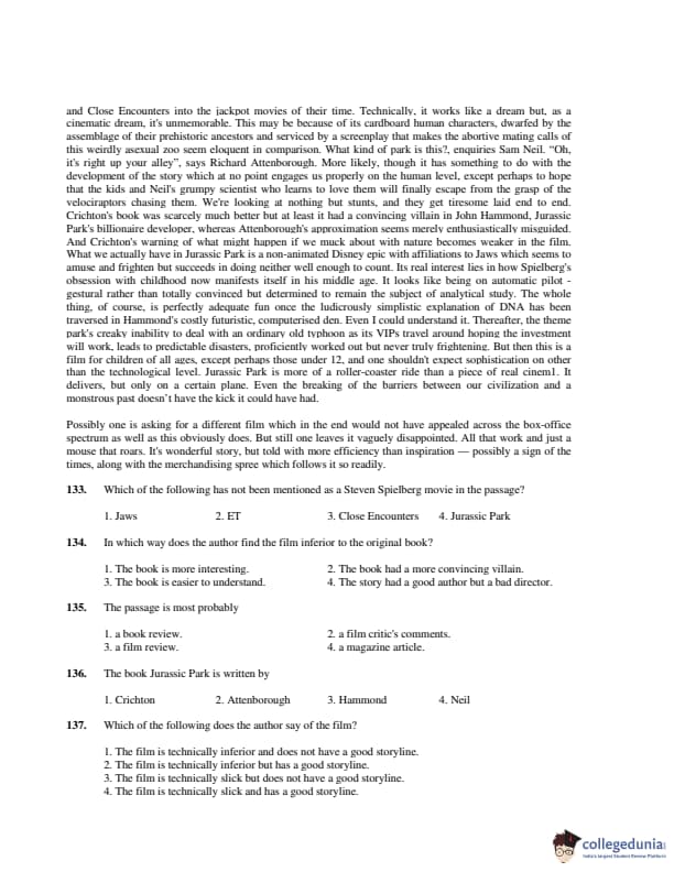 The writer’s opinion of the film \textit{Jurassic Park may be said to be