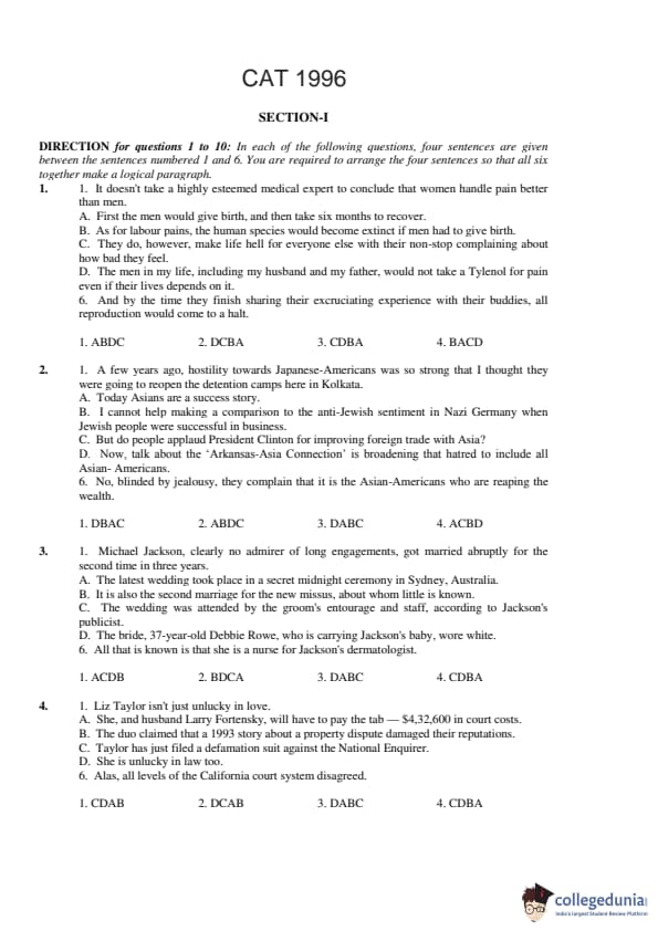 Candidates preparing for CAT 2025 can download the CAT 1996 question paper with the solution PDF to get a better idea about the type of questions asked in the paper and their difficulty level.