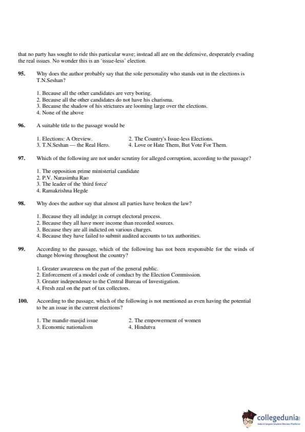 | CAT 1996 Question Paper with Answer Key | Download PDF | Check Solutions |
