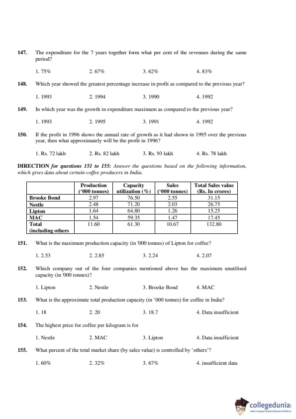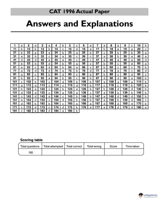 CAT 1996 Question Paper with Answer Key PDF is available for download. The question paper of CAT 1996 carried 185 questions divided into four sections- Verbal Ability, Reading Comprehension, Problem Solving/Quant, and Data Interpretation
