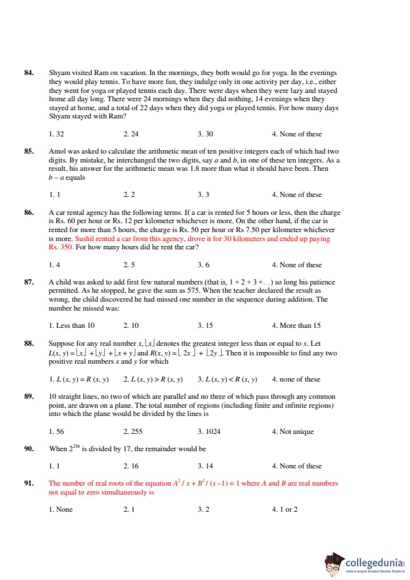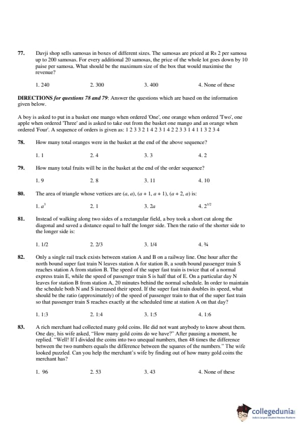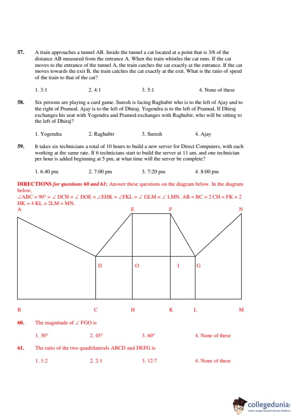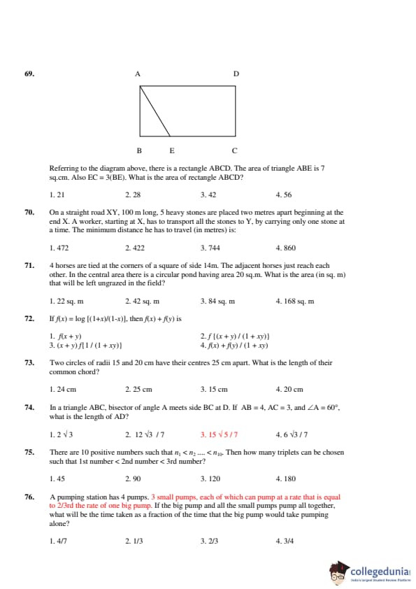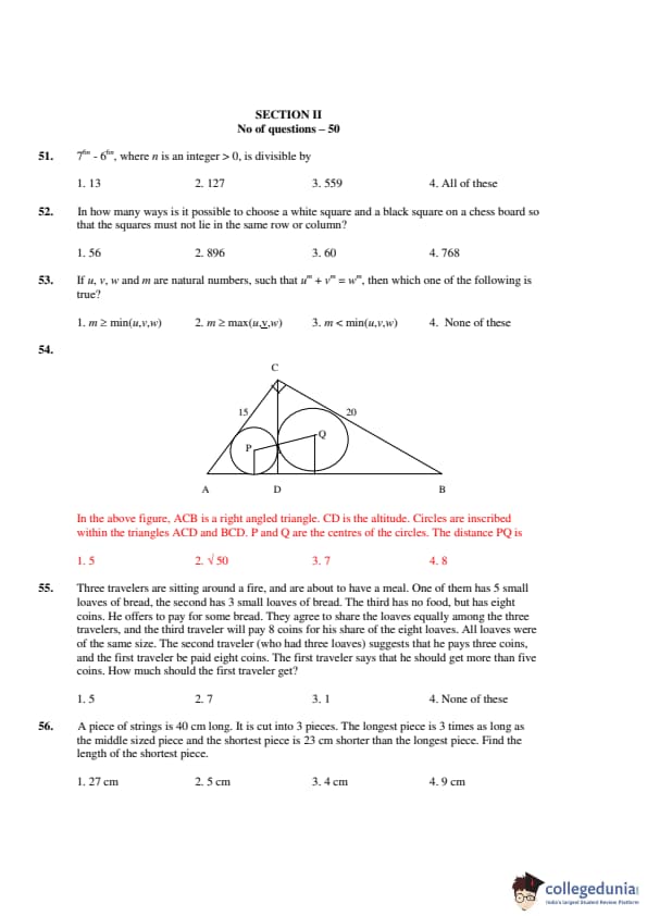 This section also carried 50 questions based on Quantitative Ability. There were 4 questions from Permutations & Combination, 7 questions from Plane Geometry, 2 questions from Mensuration, 2 questions from Coordinate Geometry, 3 questions from Time & Distance and 2 questions from Time & Work. 3 out of 50 questions were based on reasoning and 6 questions were based on groups. Out of 50 questions, 14 questions were easy, 6 were moderate, and 30 were difficult level questions.