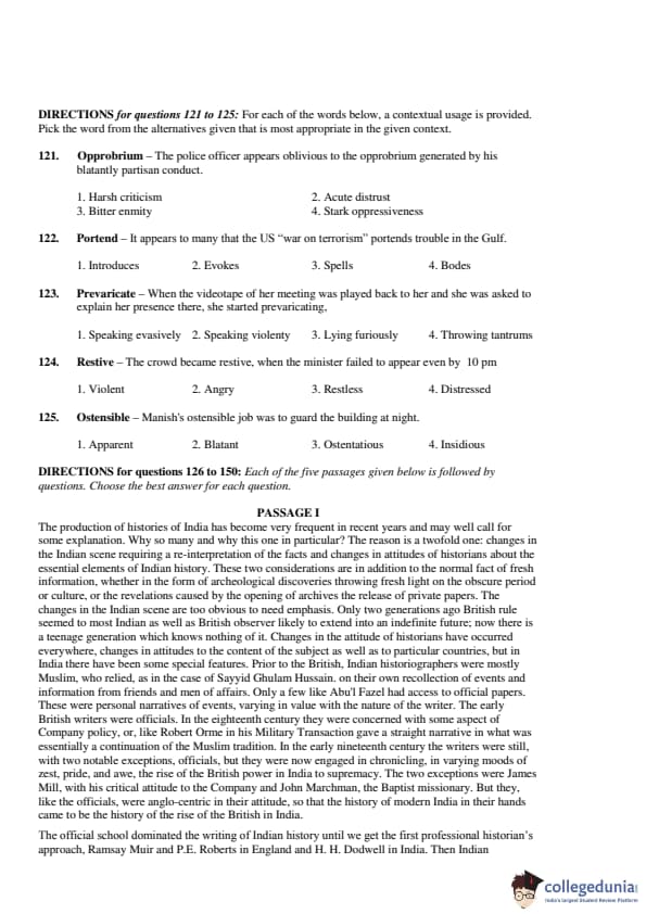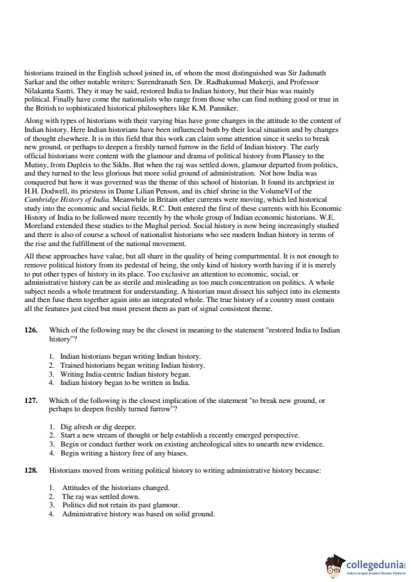 - RC Passage on Rewriting of Indian History(Approx. 860 words)- 5 questions