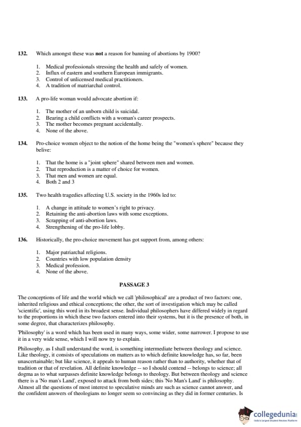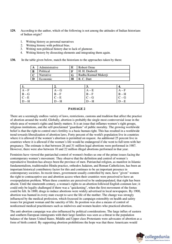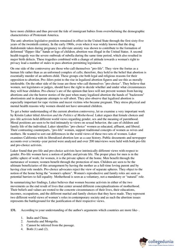 - RC Passage on Abortion(Approx. 1170 words)- 6 questions