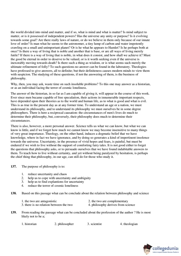 - RC Passage on Theology, Philosophy and Science (Approx. 720 words)- 4 questions