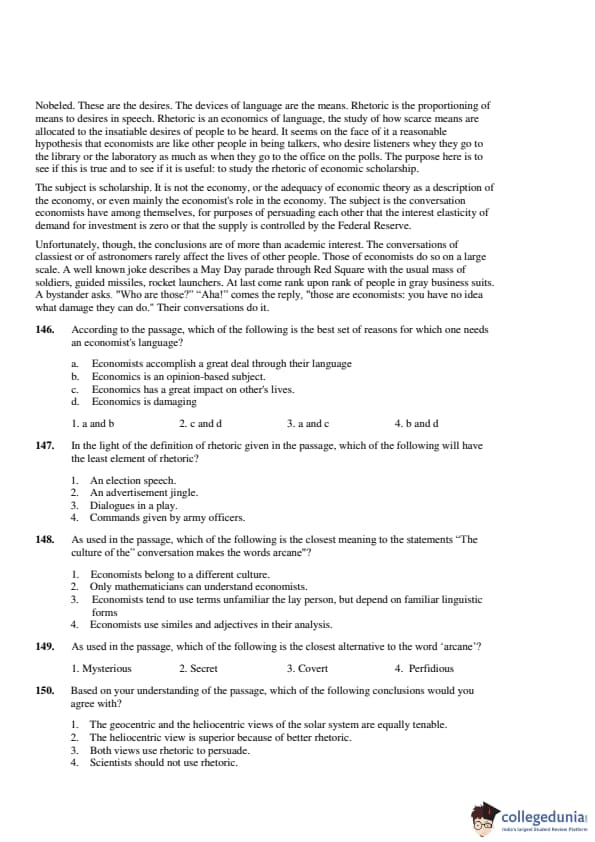- RC Passage on Devices of Language(Approx. 720 words)- 5 questions
