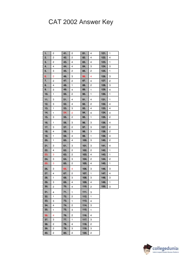 | CAT 2002 Question Paper with Answer Key | Download PDF | Check Solutions |