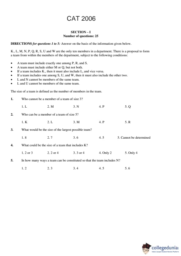 - There were five options for each question in CAT 2006 paper.
