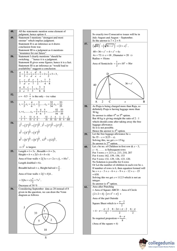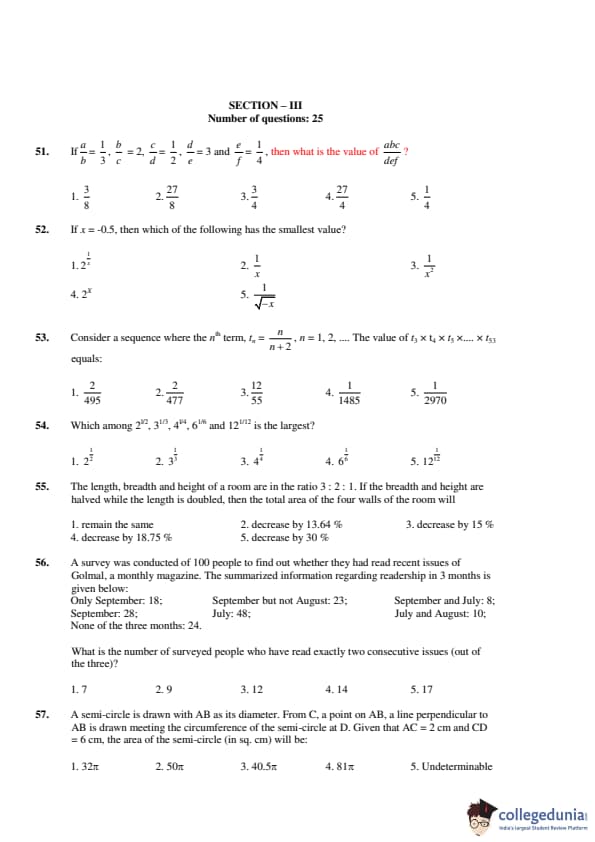 - Maximum weightage in the QA section was carried by the Arithmetic topics, while questions related to Modern Mathematics carried the least weightage.