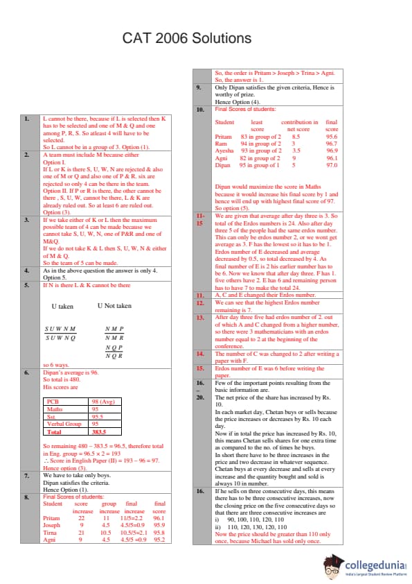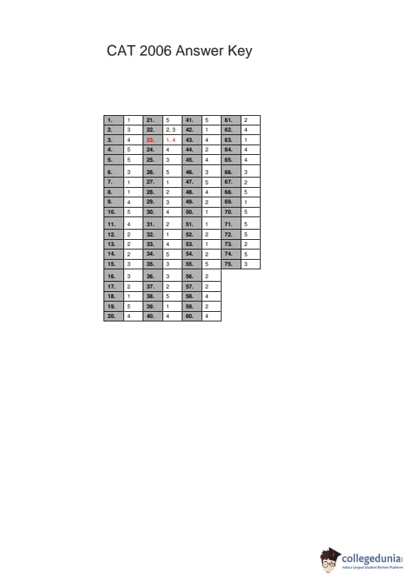 | CAT 2006 Question Paper with Answer Key | Download PDF | Check solutions |