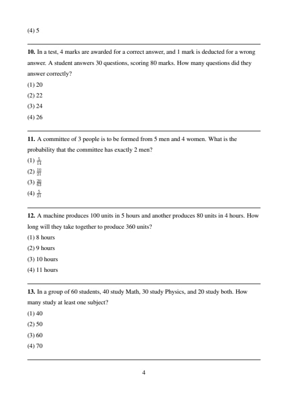 - Step 3: Conclusion. Option (1) is correct with 4 marks per correct answer.
