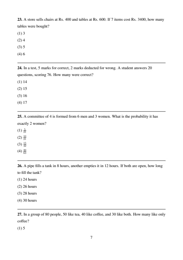 Quick Tip: For probability, use combinations: \(\binom{n}{k}\) for selecting \(k\) items from \(n\), and divide favorable outcomes by total outcomes.