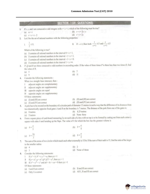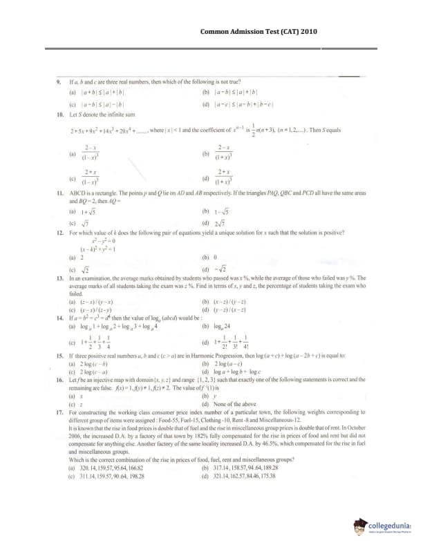- Questions from Ratio and Percentage, Volume of Solid, Permutation & combination were also there in the CAT 2010 Question Paper.