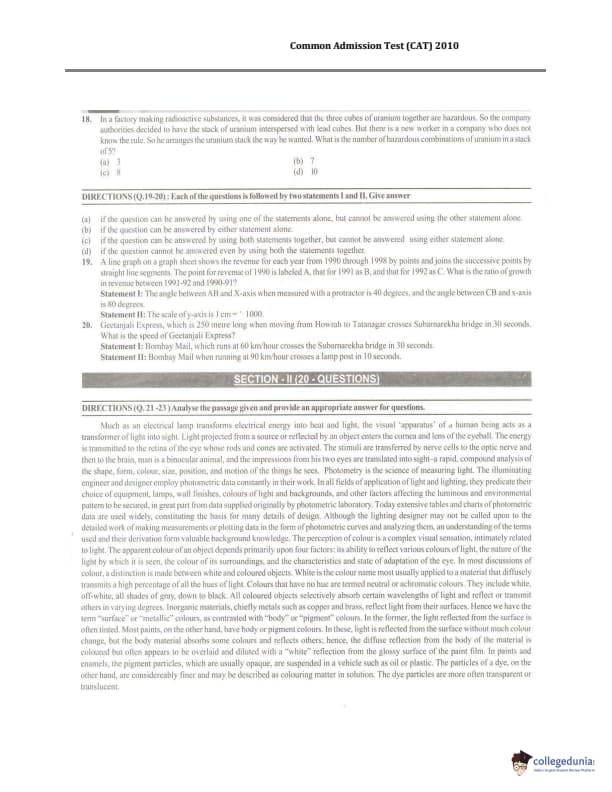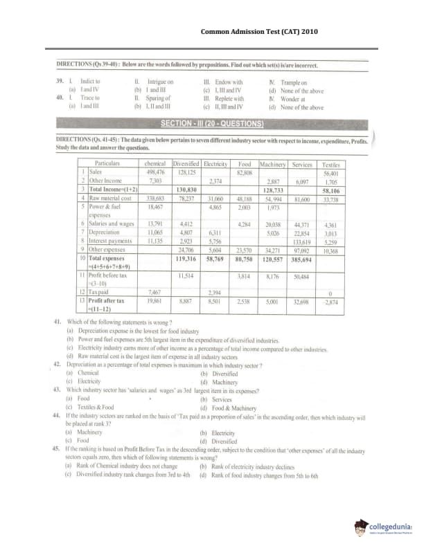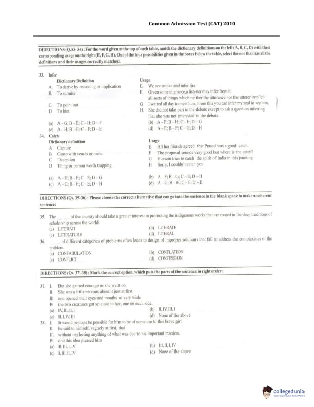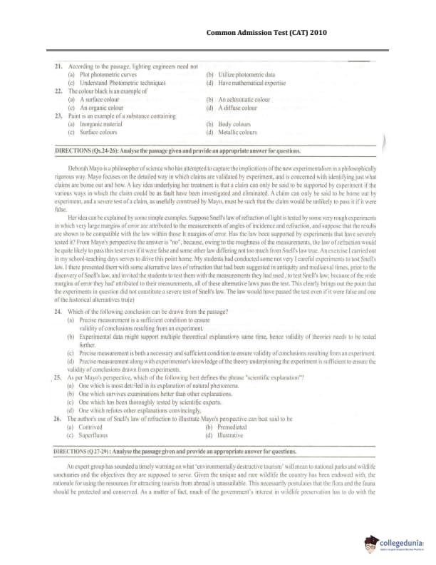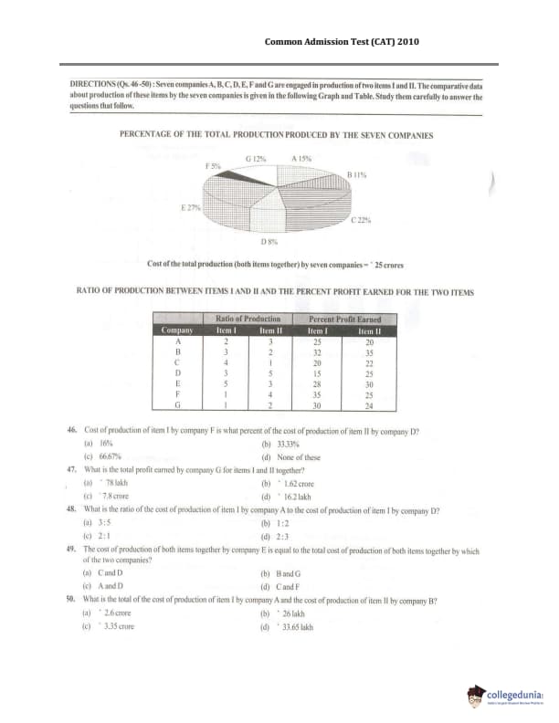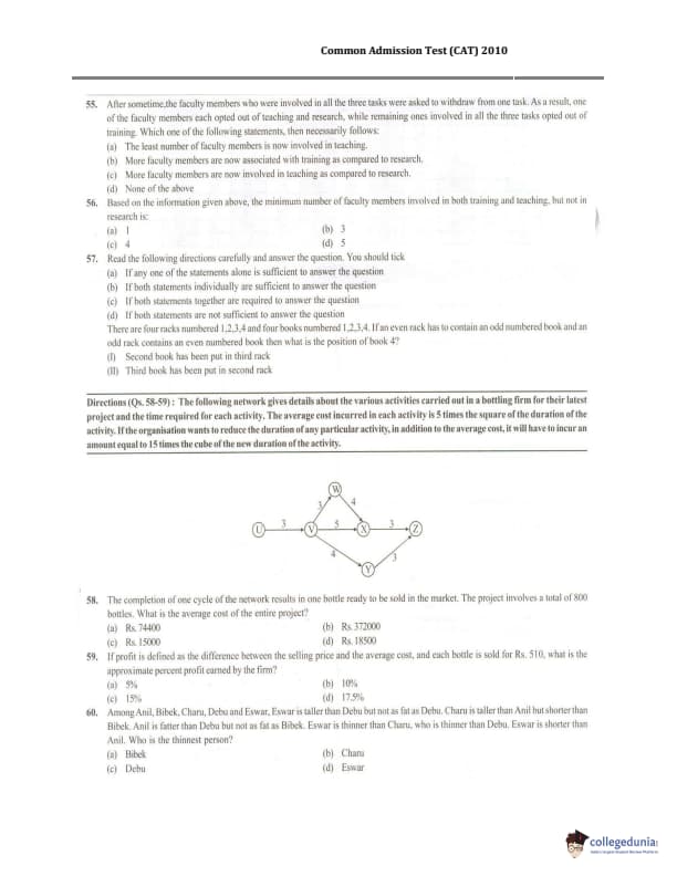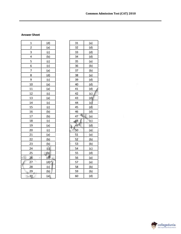 | CAT 2010 Question Paper with Answer Key | Download PDF | Check Solutions |