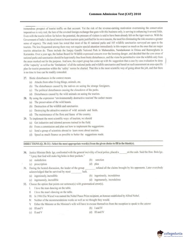 CAT 2010 Verbal Ability & Reading Comprehension question Paper Analysis