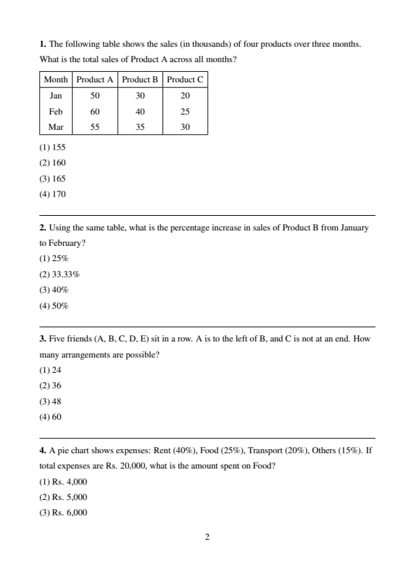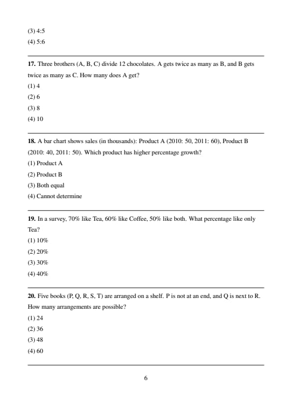 | Para jumble (Odd sentence out) | 2 | Moderate |