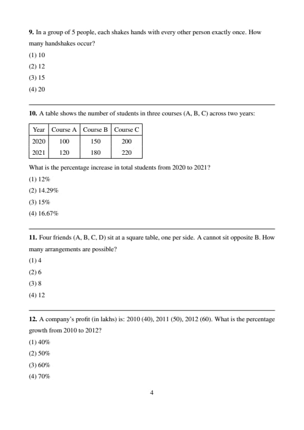 A company’s profit (in lakhs) is: 2010 (40), 2011 (50), 2012 (60). What is the percentage growth from 2010 to 2012?