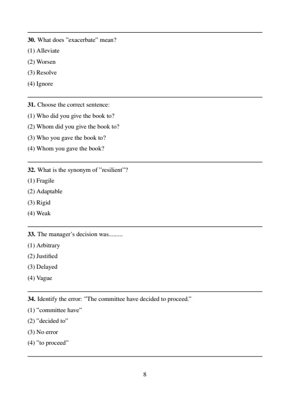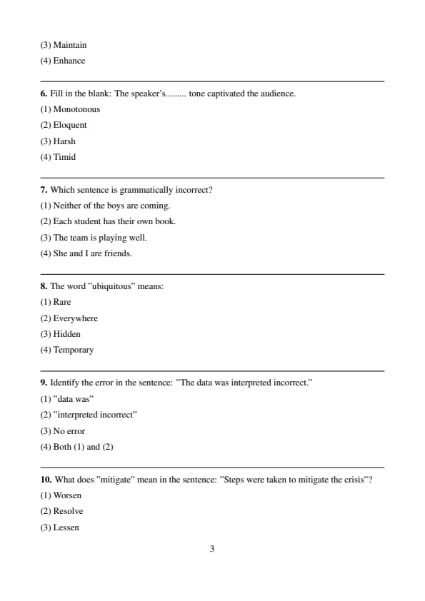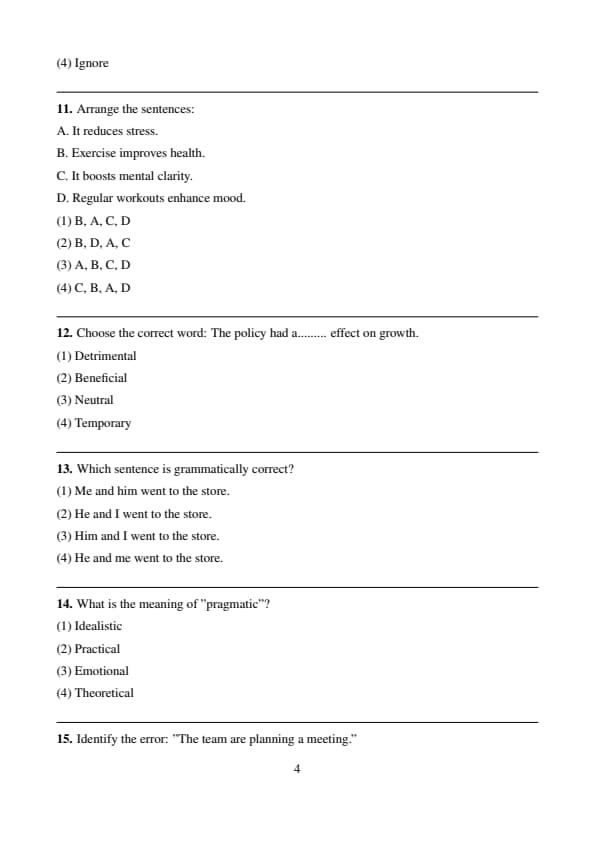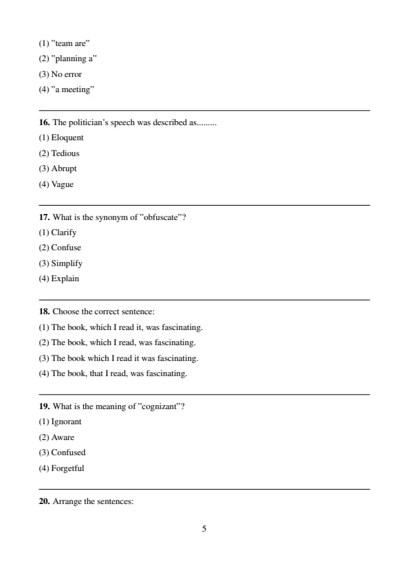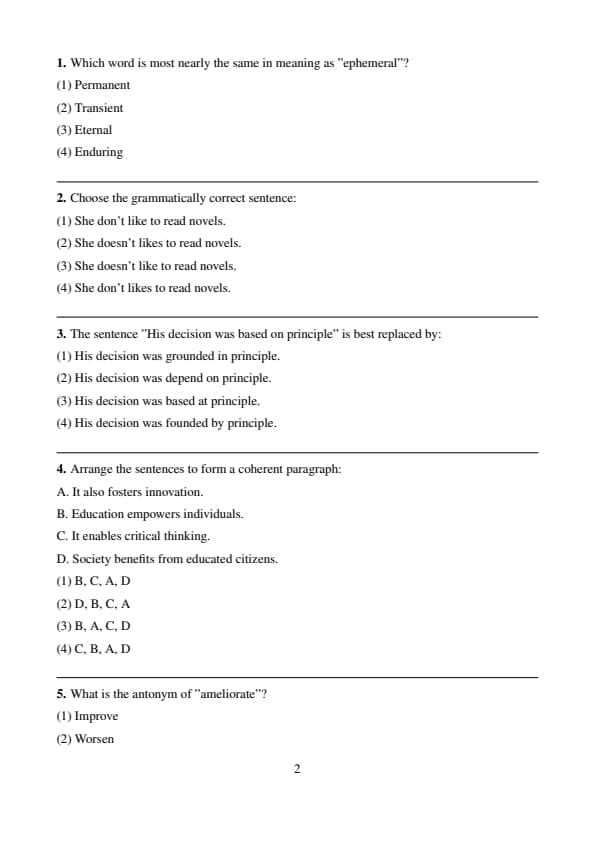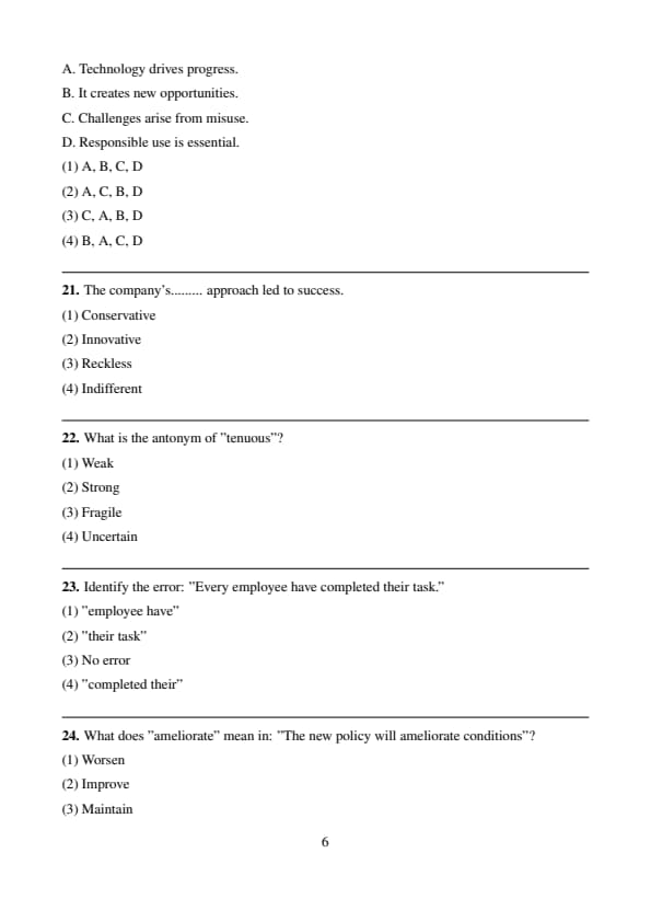 | Para jumble (Odd sentence out) | 2 | Moderate |