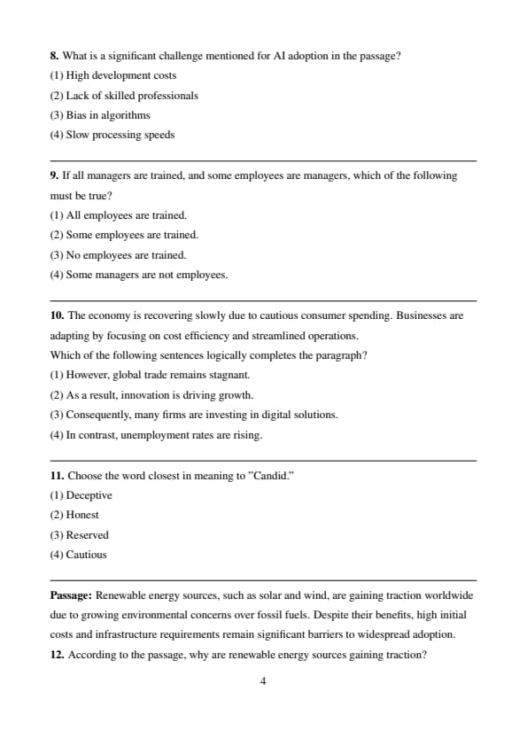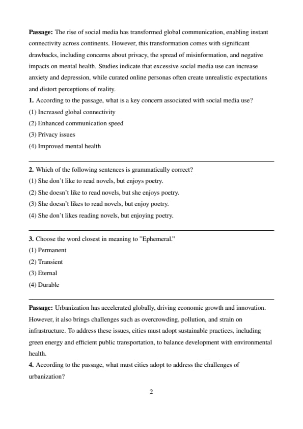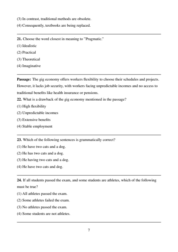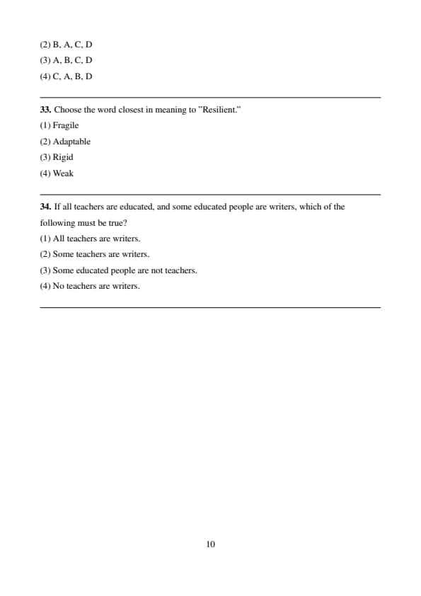 | Reading Comprehension | 10 (4+3+3) | Moderate |