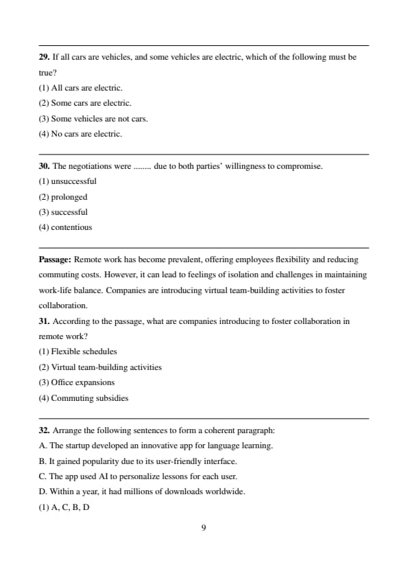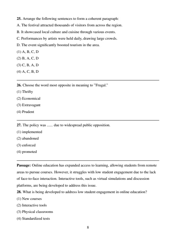 - The candidates were asked for sentence correction, para-jumble, para completion, fill in the blanks, word usage.