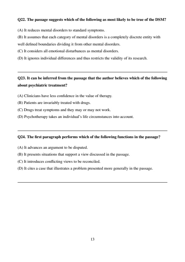\[ \boxed{A} \] Quick Tip: Focus on direct criticisms from the passage — the DSM's symptom-based approach is explicitly highlighted.