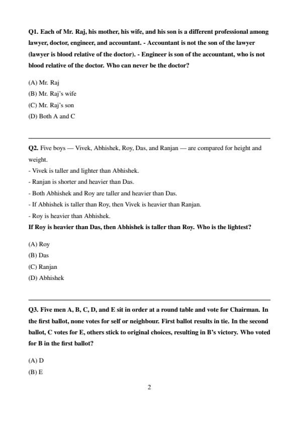 - If doctor = Mr. Raj’s son → doctor is blood relative, accountant would be mother or wife. But engineer = son of accountant contradicts son = doctor.