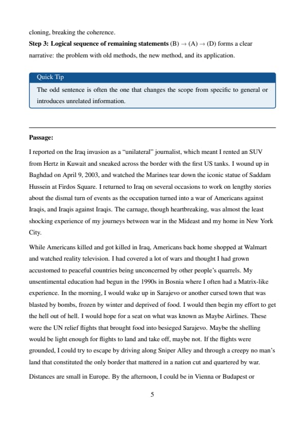\[ \boxed{acdeb} \] Quick Tip: Place abstract ideas or metaphors early. Follow with examples or analogies. Let the paragraph build toward modern relevance.