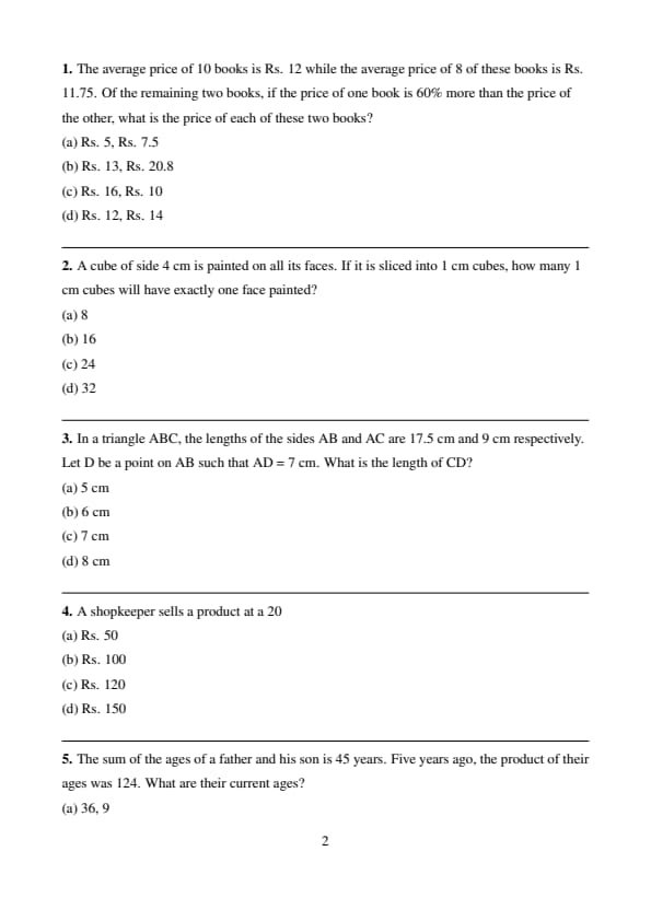 - The question paper had around 10 questions from the Algebra part.