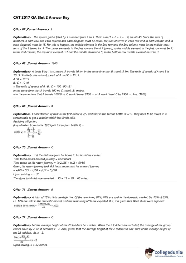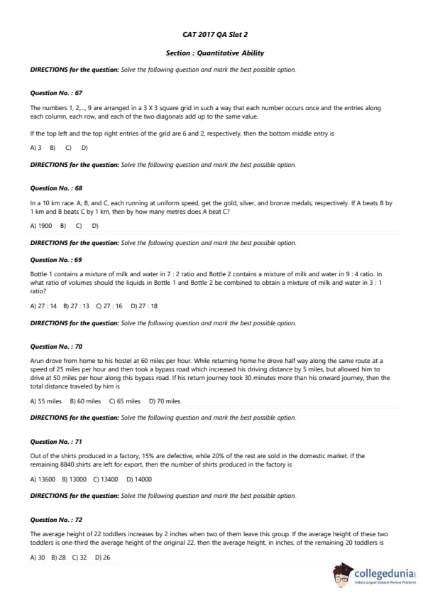 | CAT 2017 QA Slot 2 Question Paper with Answer Key | Download PDF | Check Solutions |