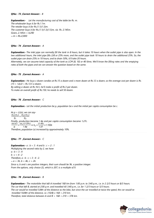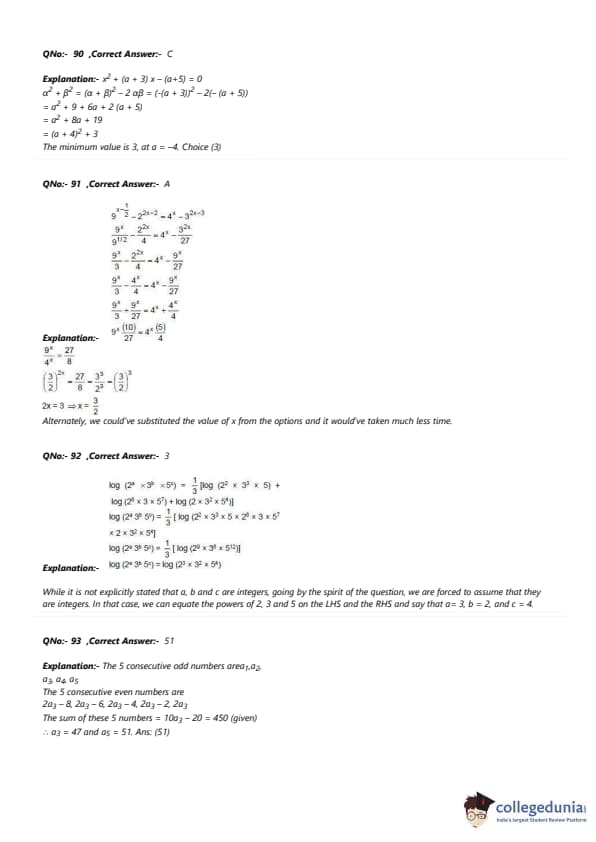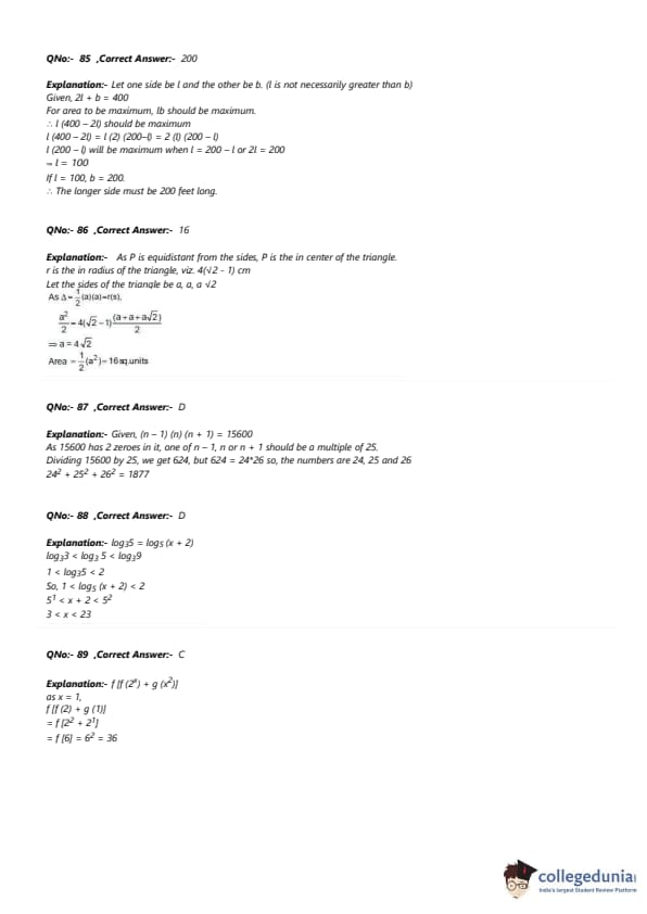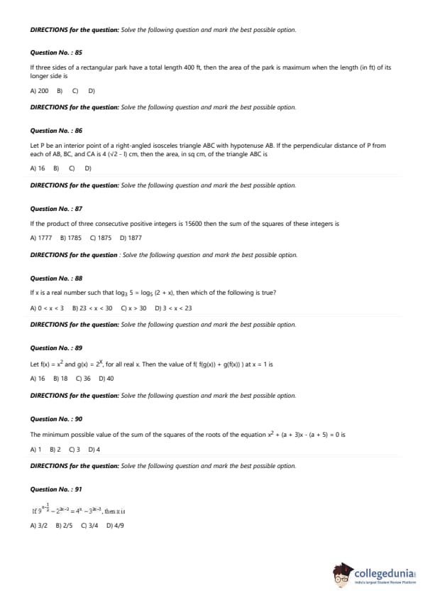 - Most of the questions from Algebra were based on inequalities and Quadratic Equations.