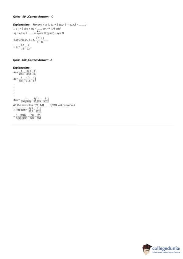 \[ \frac{1}{3} \times \frac{2}{302 \times 300} = \frac{1}{3} \times \frac{50}{302 \times 151} = \frac{25}{151} \] Quick Tip: When working with geometric series with varying numerators and denominators, identify the pattern and use the general formula for the sum of a geometric series.