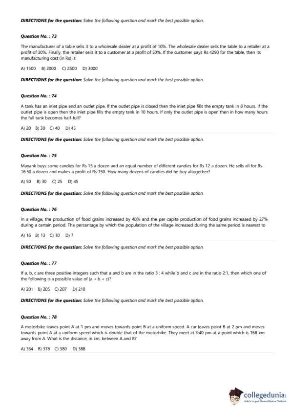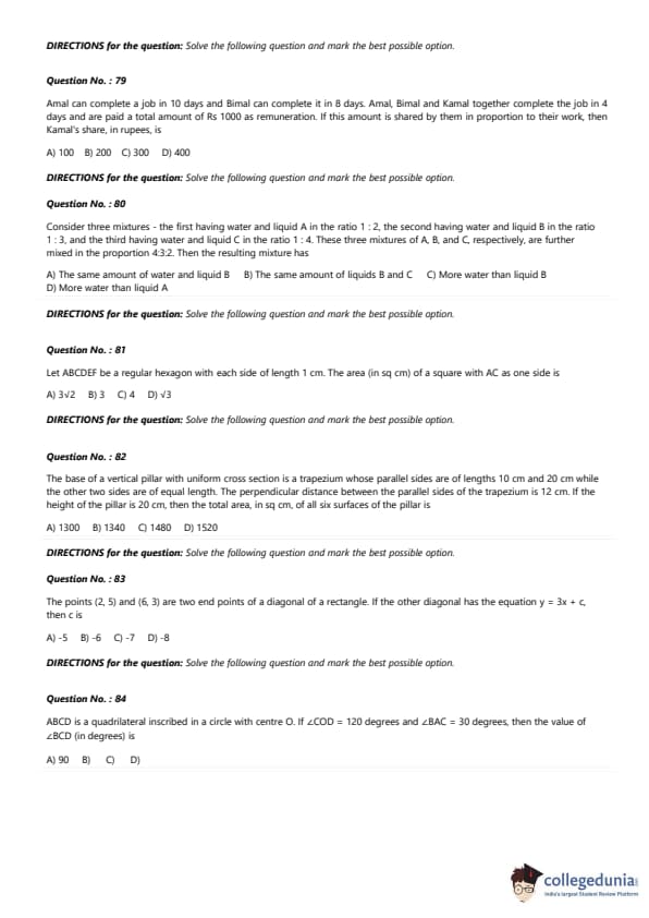 - In the quantitative section, several geometry questions were included.