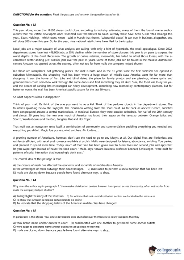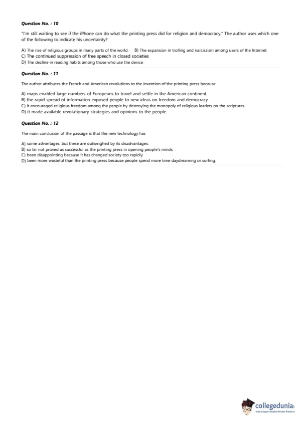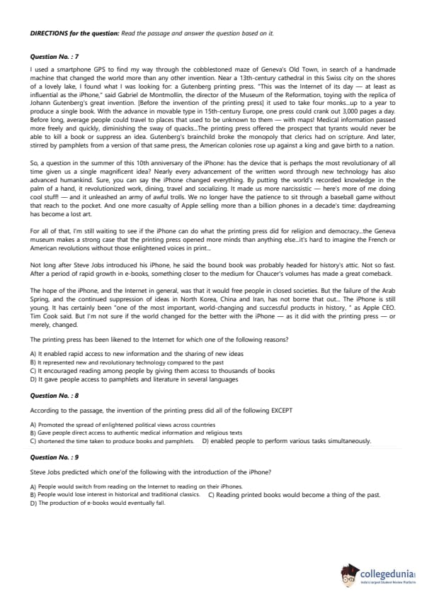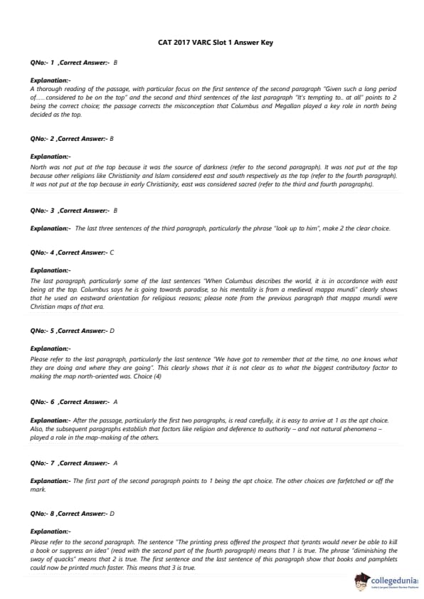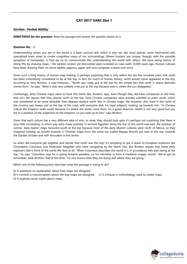 | CAT 2017 VARC Slot 1 Question Paper with Answer Key | Download PDF | Check solutions |