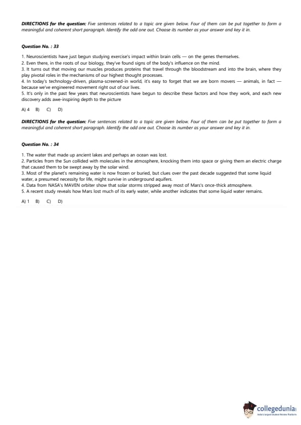 - 5 sentence paragraphs were given among which one was the odd sentence.