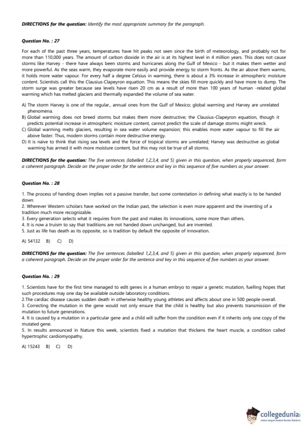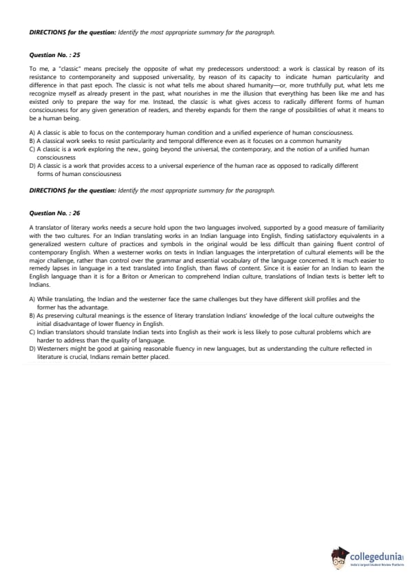 - The question paper had 100 words paragraphs with 4 options.