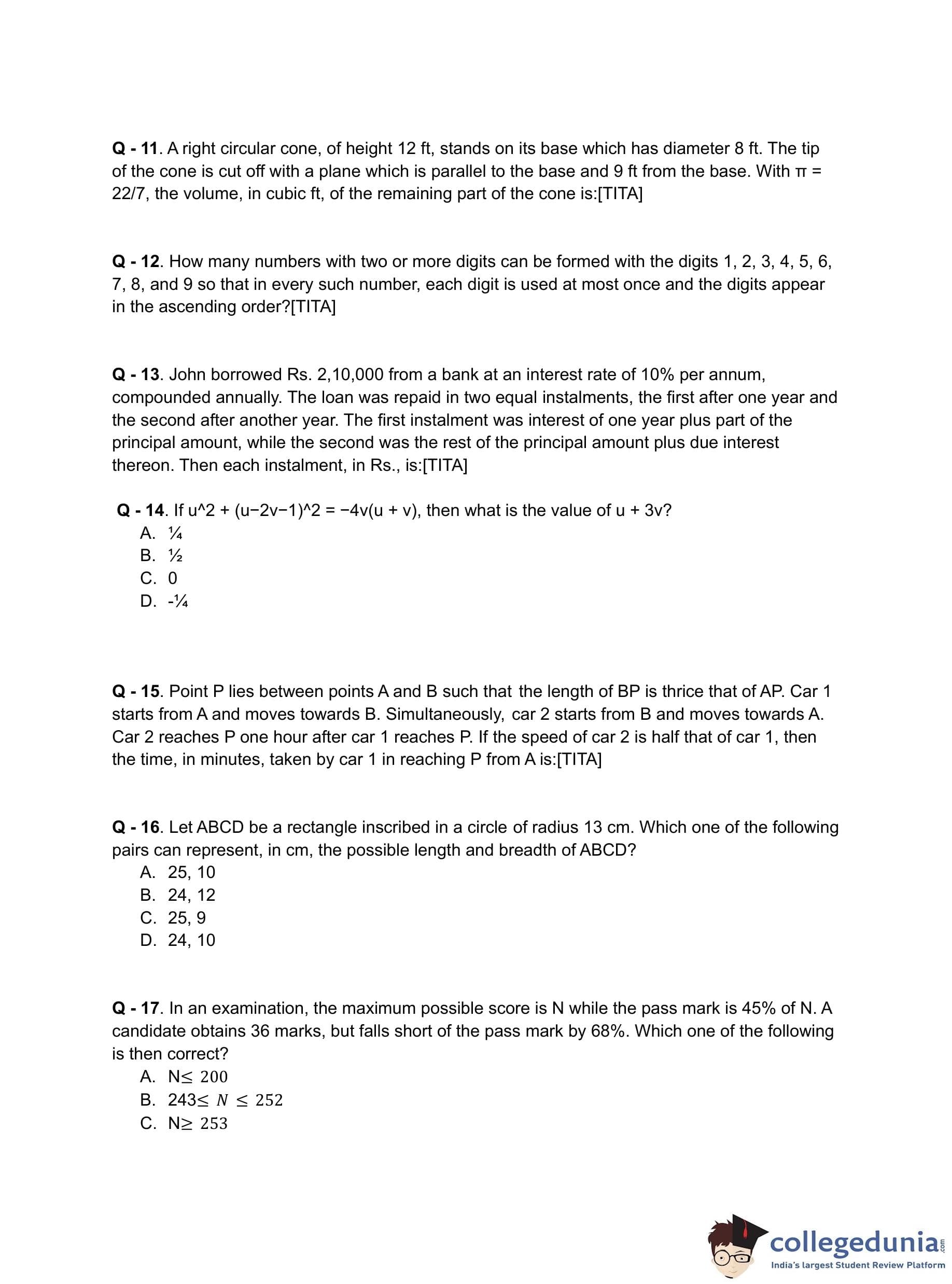 | CAT 2018 QA Slot 1 Question Paper with Answer Key | Download PDF | Check Solutions |