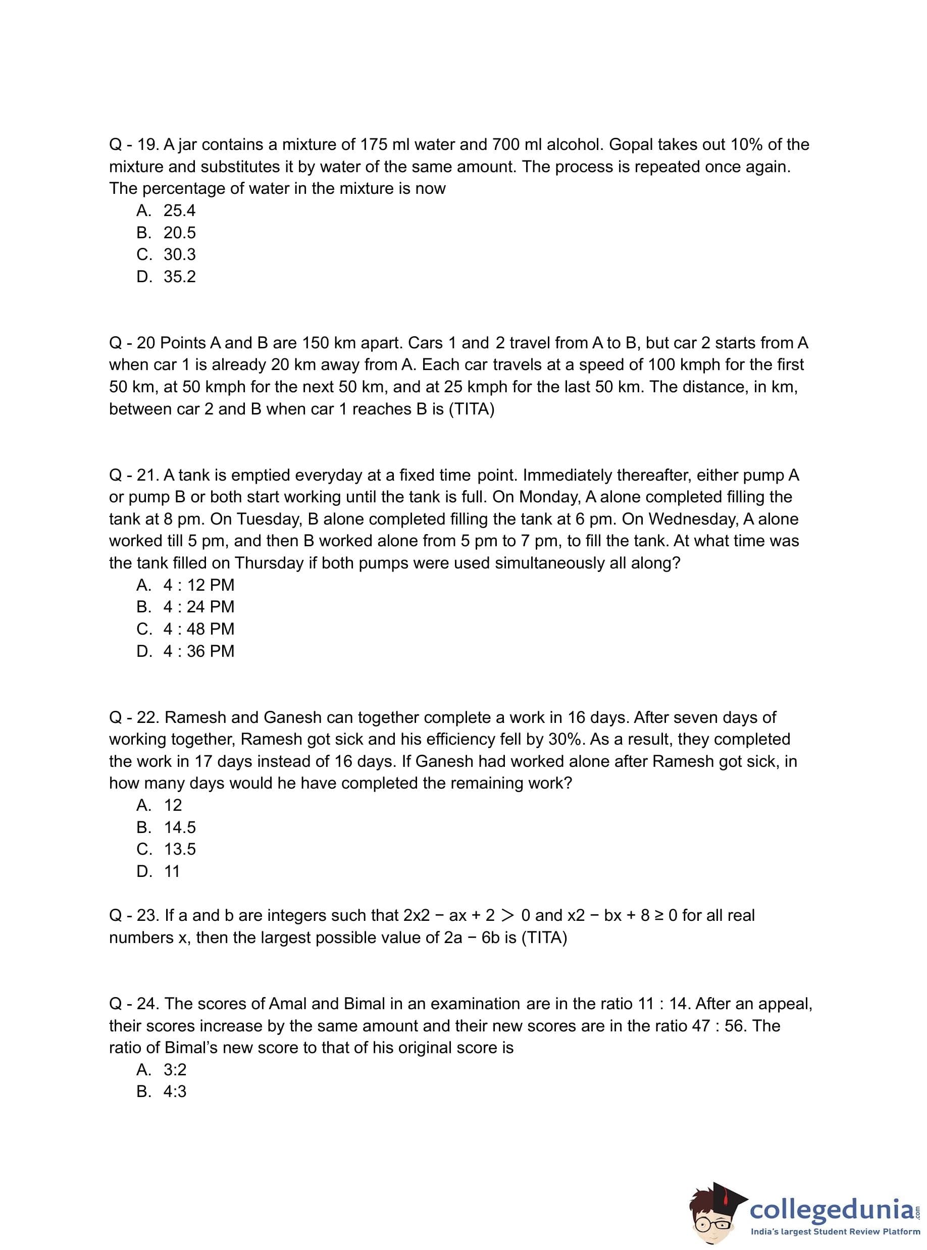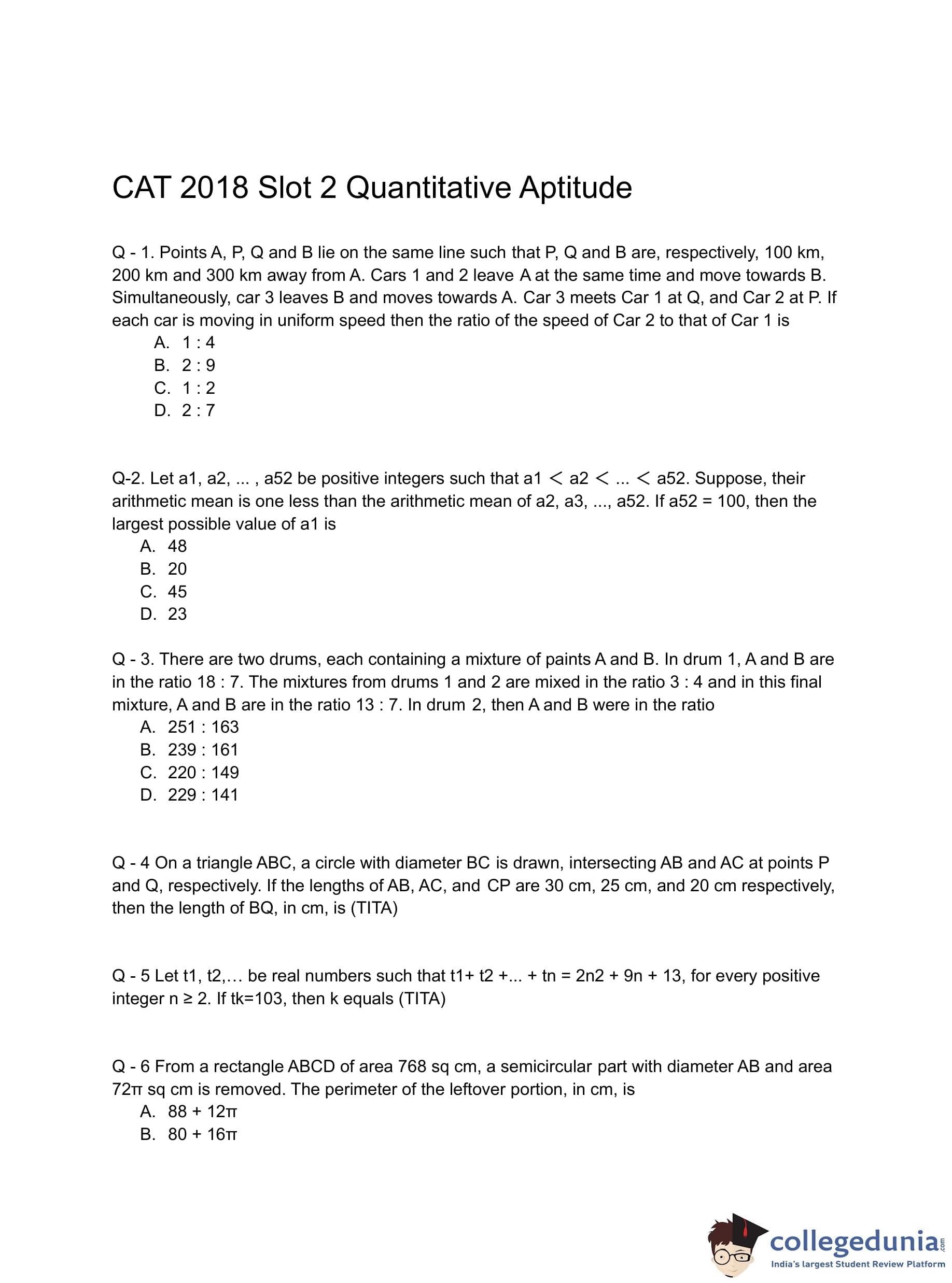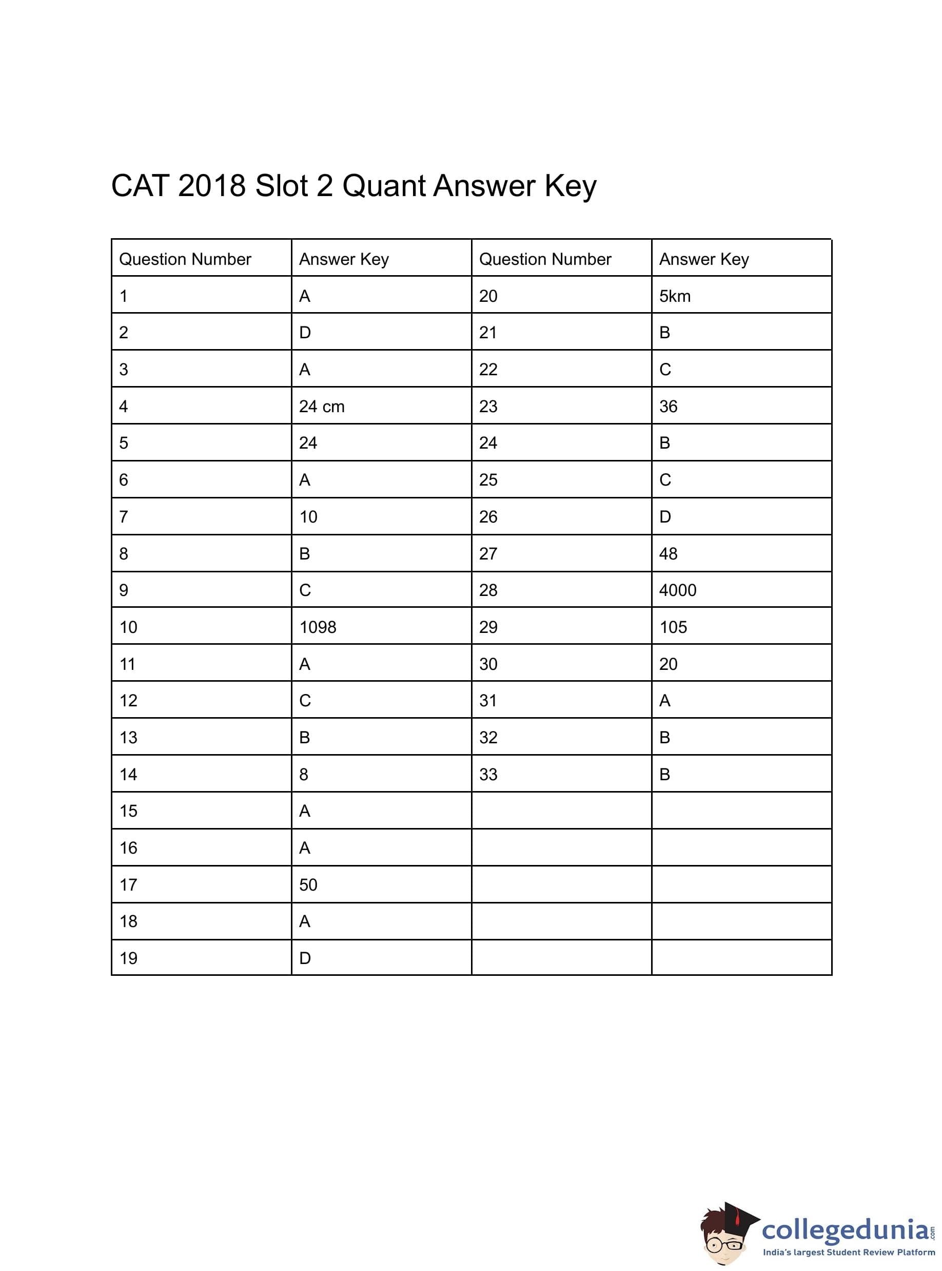 | CAT 2018 QA Slot 2 Question Paper with Answer Key | Download PDF | Check Solutions |