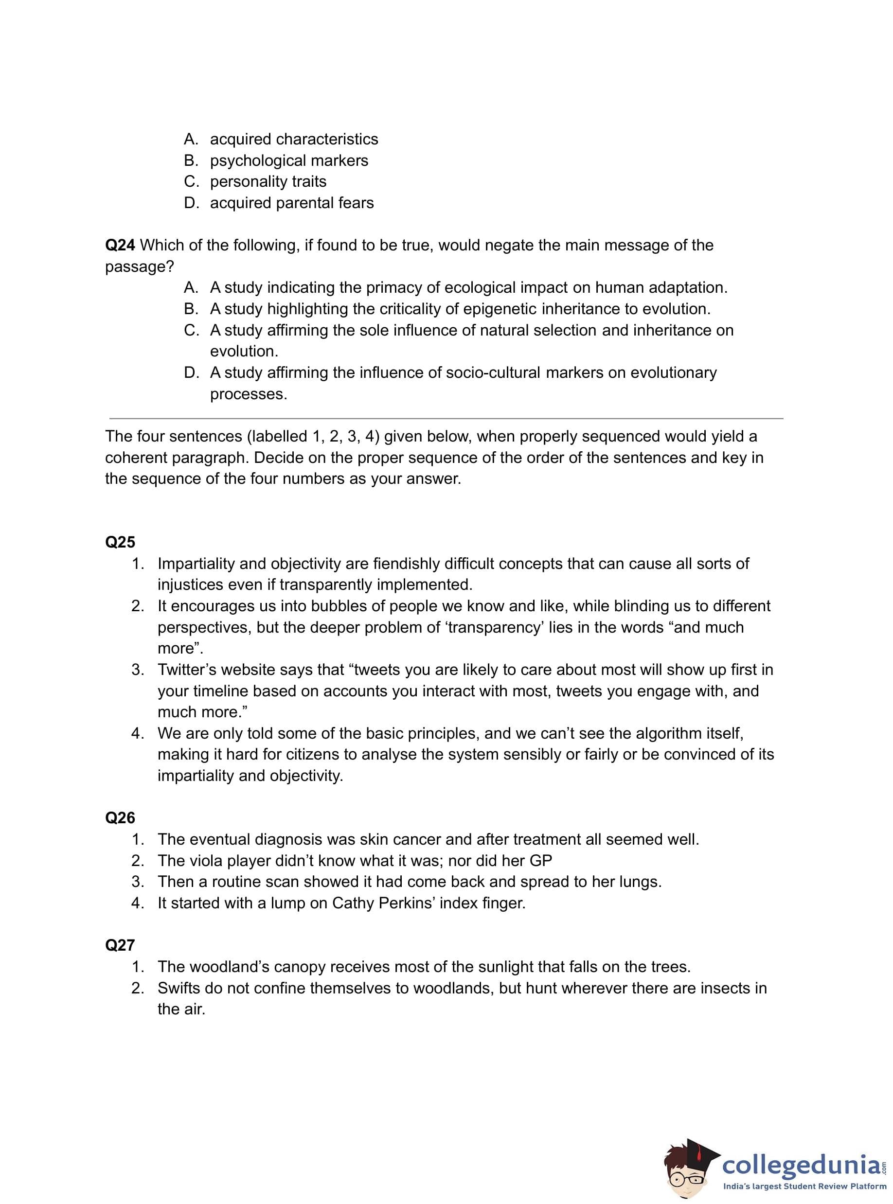 - Options in the VARC section were very distinct and this made the section easier to attempt.