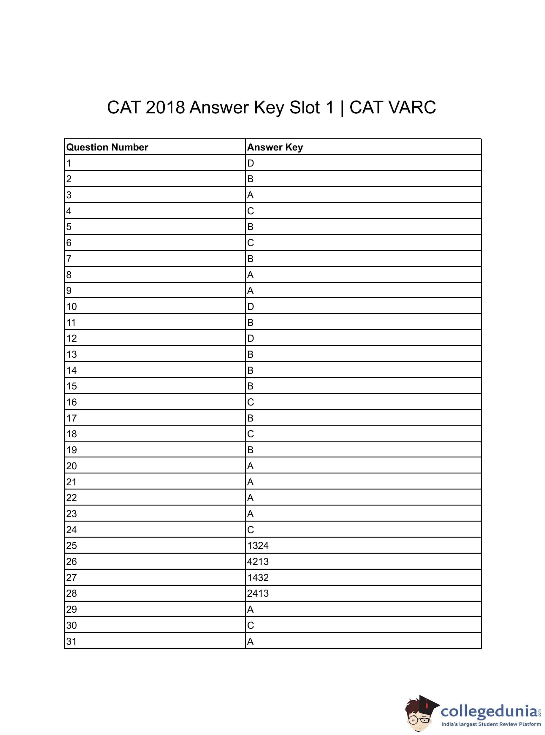 | CAT 2018 VARC Slot 1 Question Paper with Answer Key | Download PDF | Check Solutions |