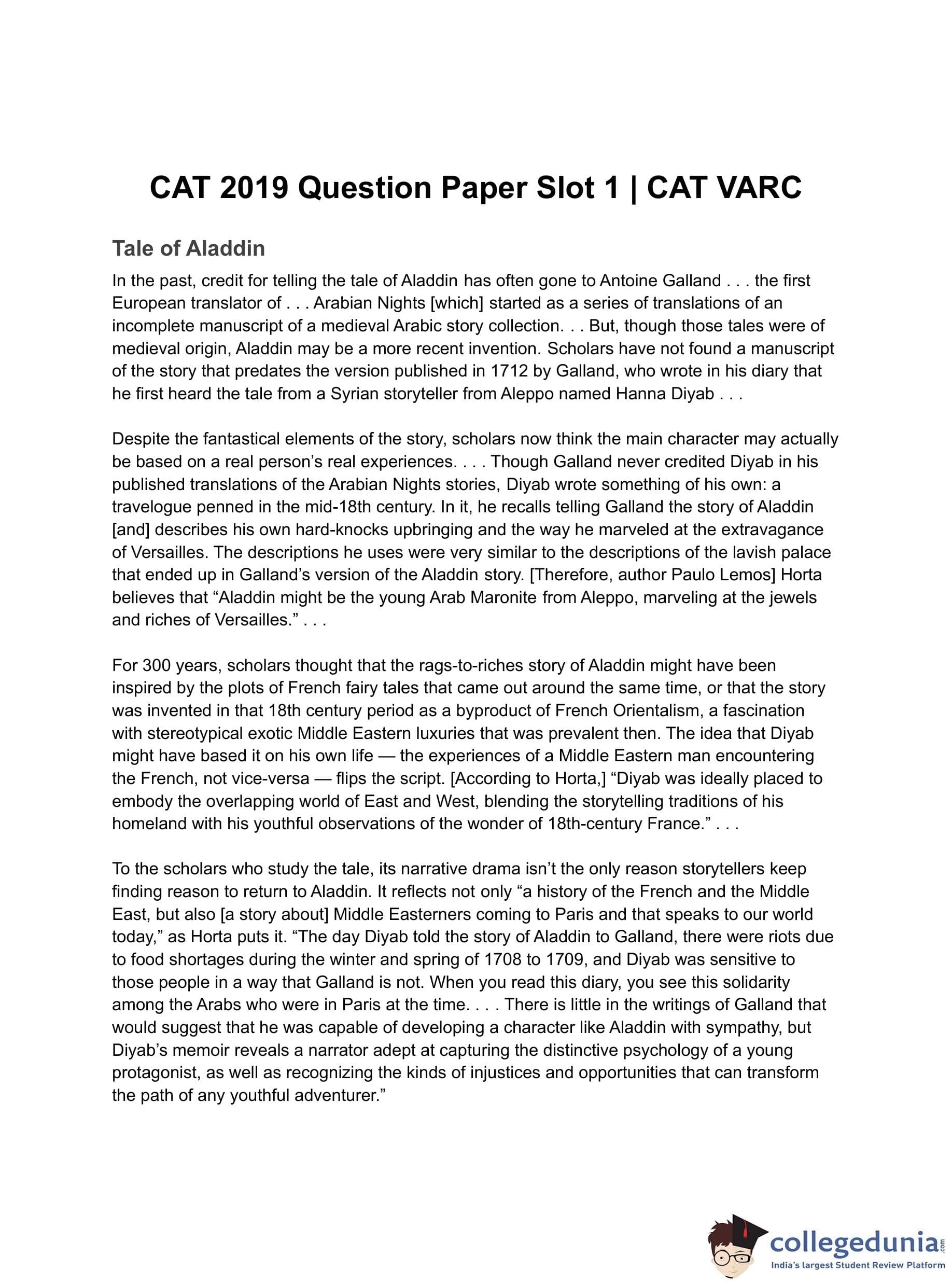 CAT 2019 VARC Slot 1 Question Paper with Solution PDF