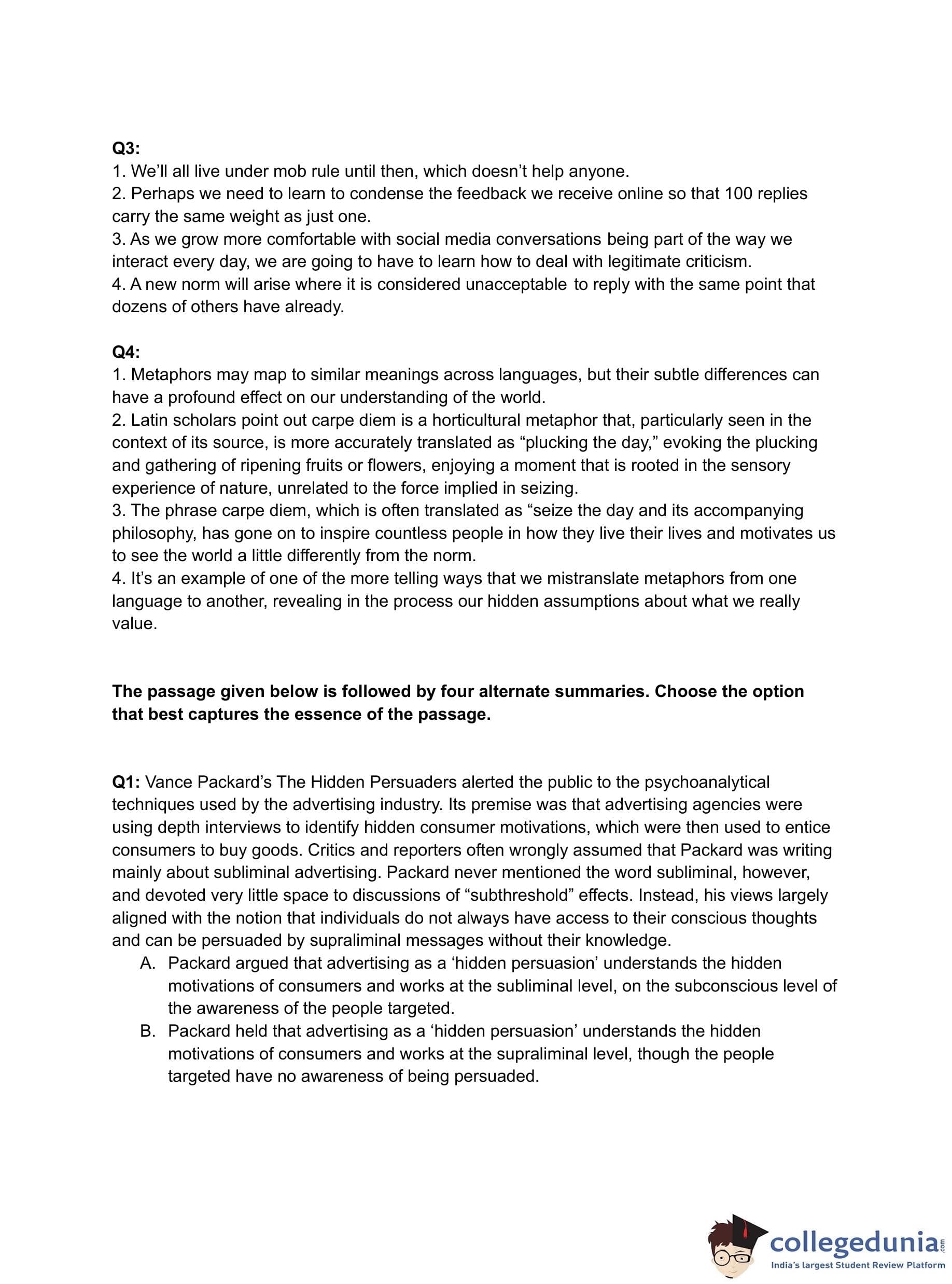 Correct Answer: (B) Packard held that advertising as a 'hidden persuasion' understands the hidden motivations of consumers and works at the supraliminal level, though the people targeted have no awareness of being persuaded.