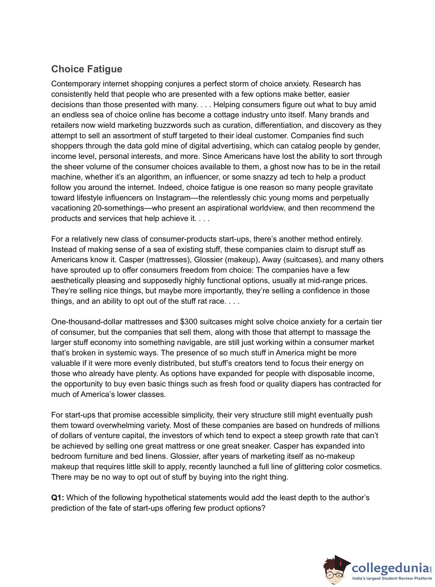 - (A) Too many options have made it difficult for consumers to trust products.