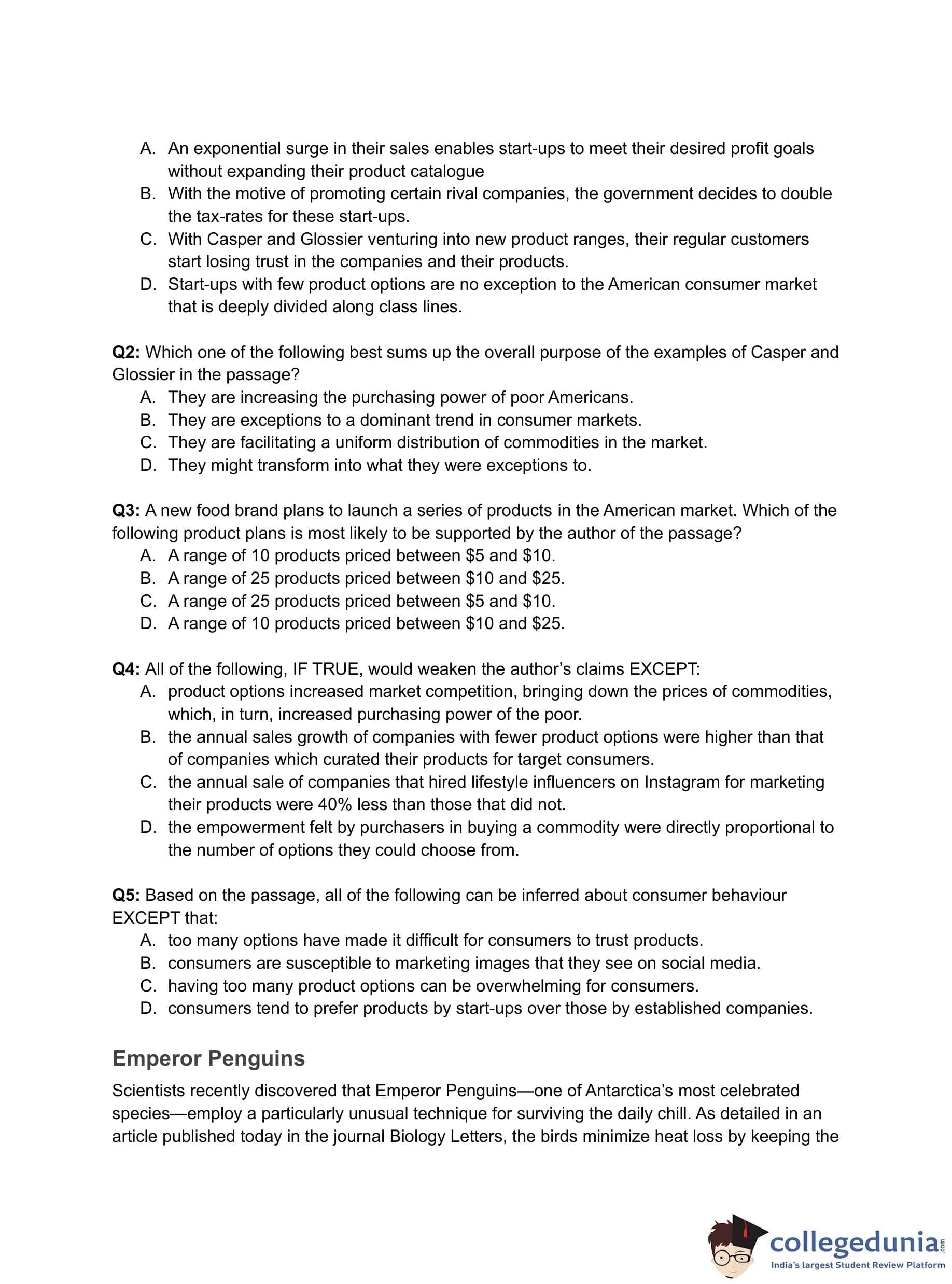 - (D) Start-ups with few product options are no exception to the American consumer market that is deeply divided along class lines.