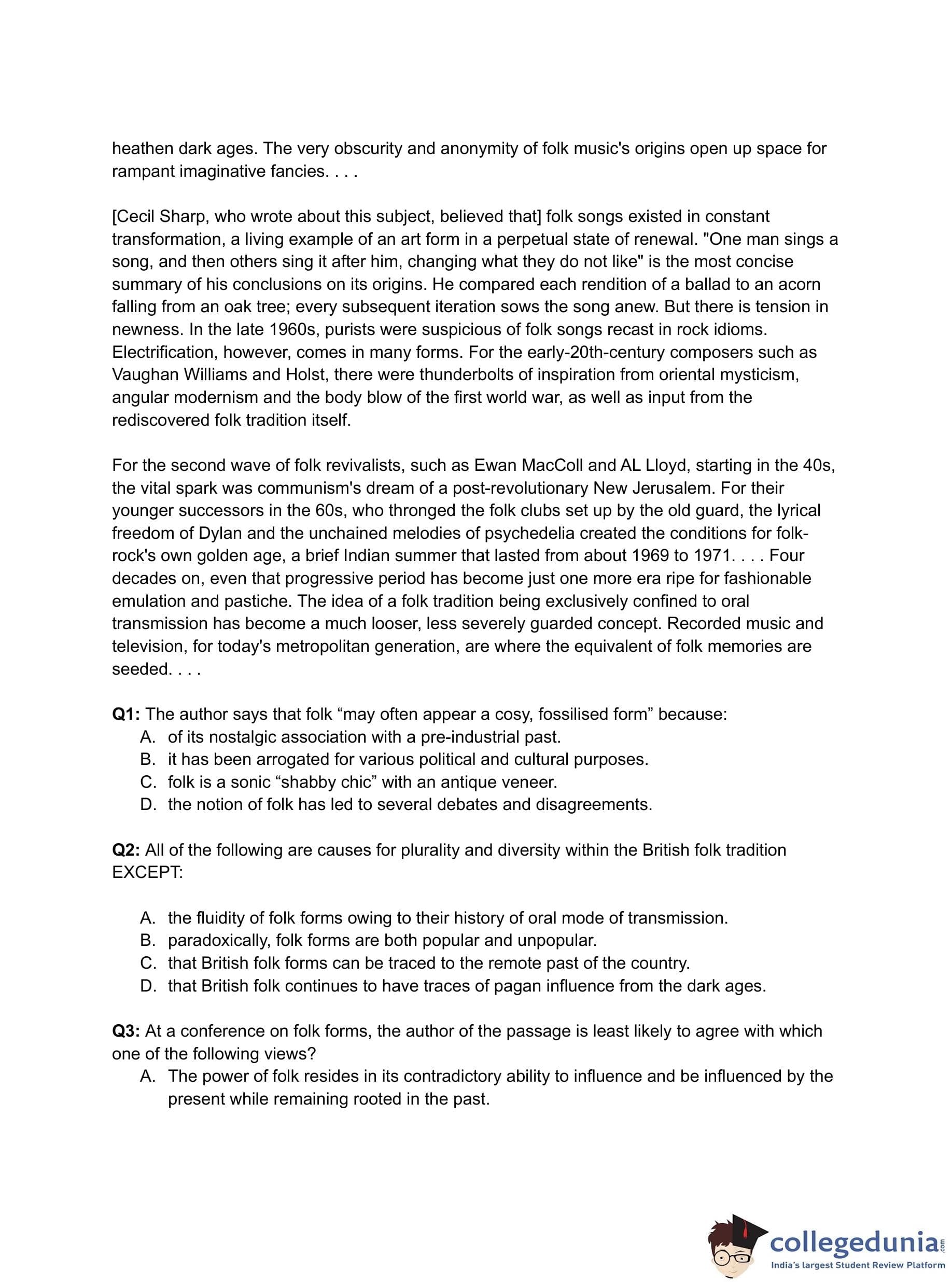 - (D) It reinforced Cecil Sharp's observation about folk's constant transformation.