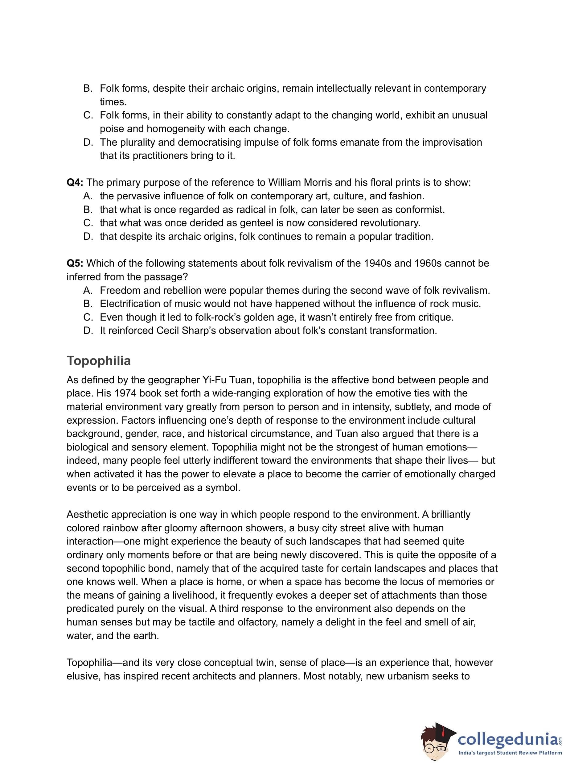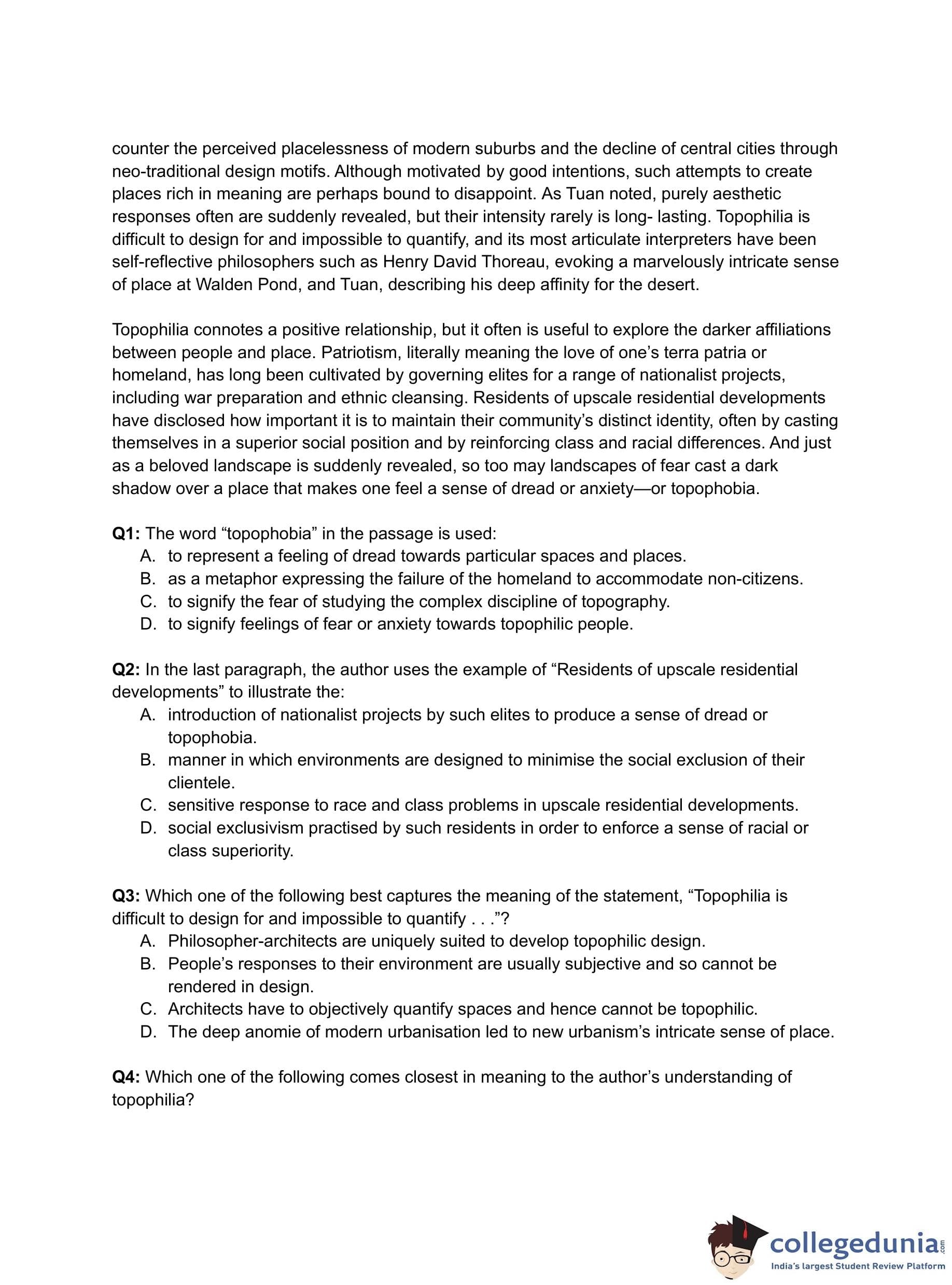 - (C) Architects have to objectively quantify spaces and hence cannot be topophilic.