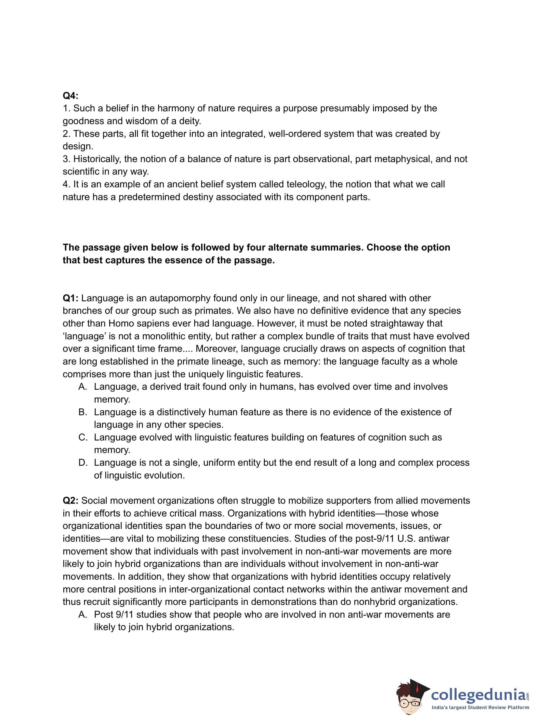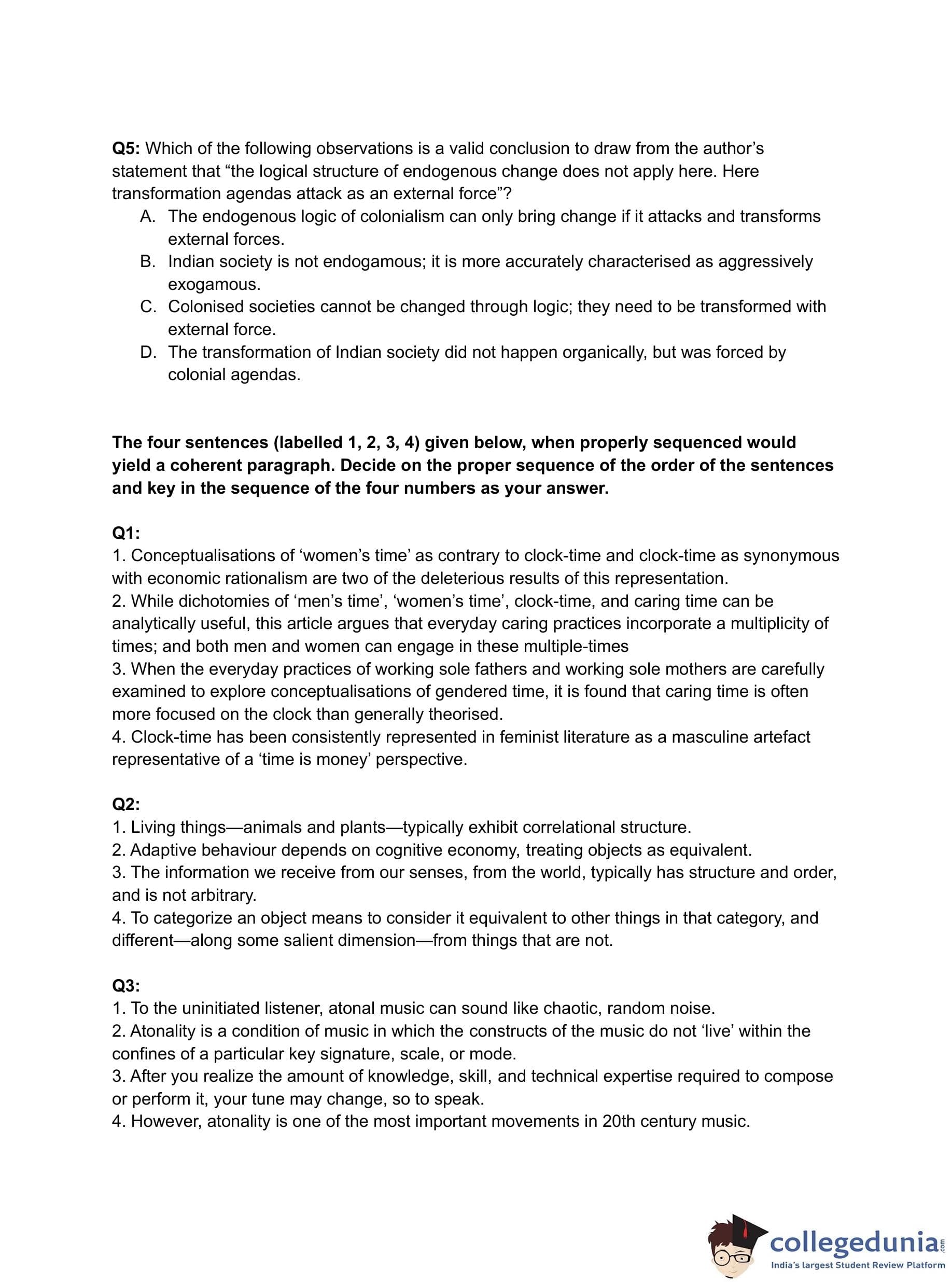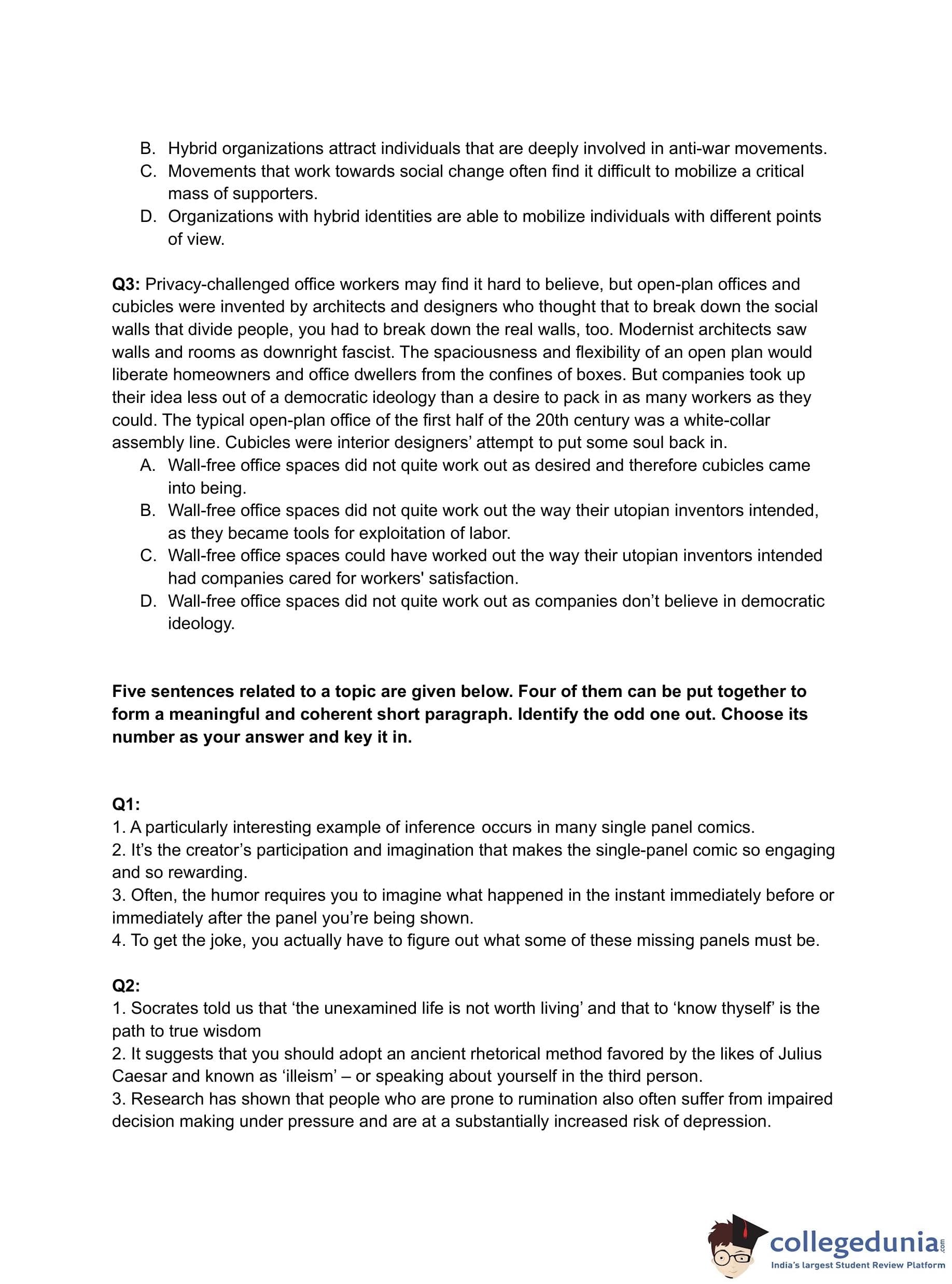- There were three questions each from the para summary and odd sentence. Their overall difficulty level was easy to moderate.