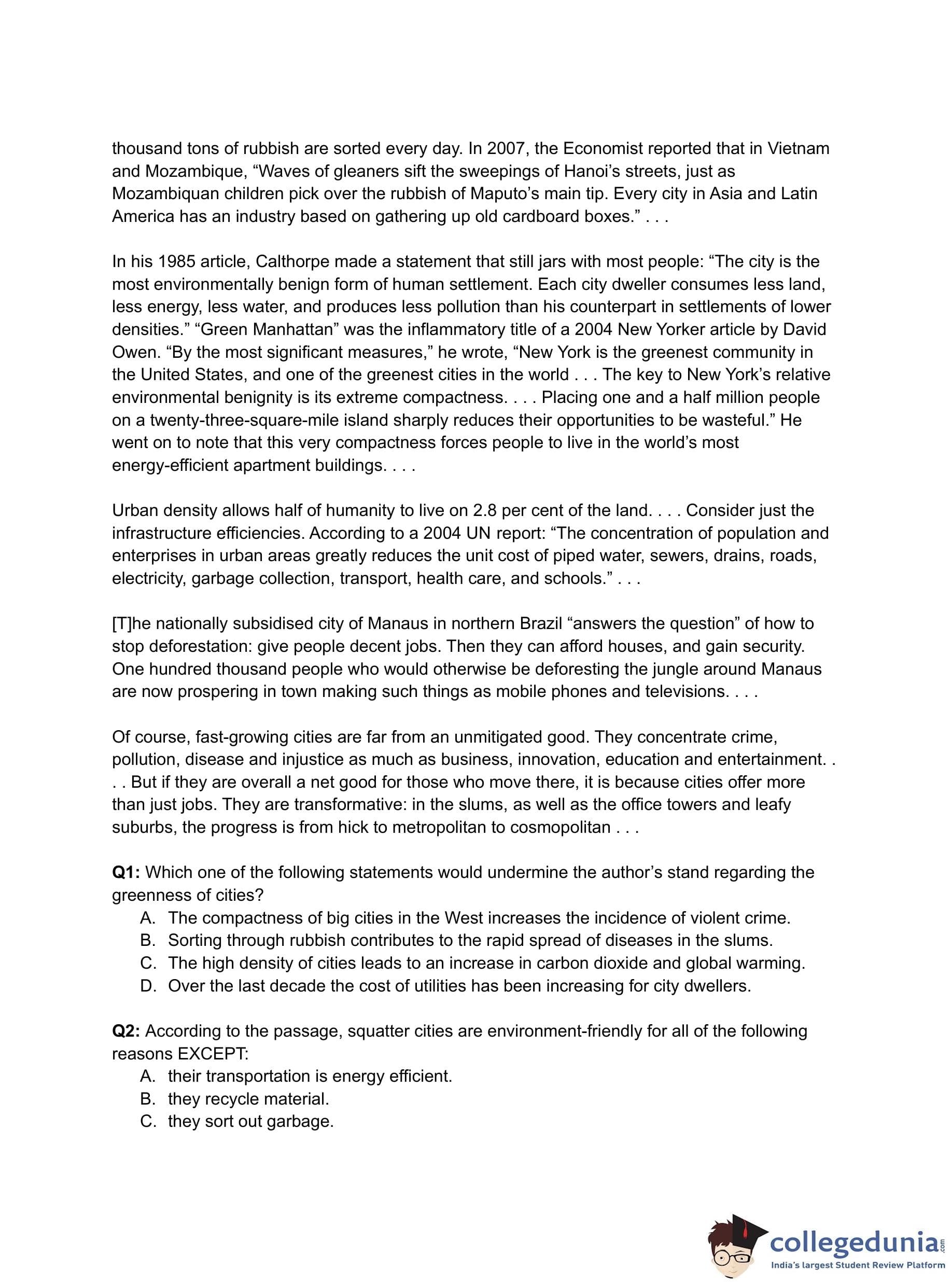 Which one of the following statements would undermine the author's stand regarding the greenness of cities?