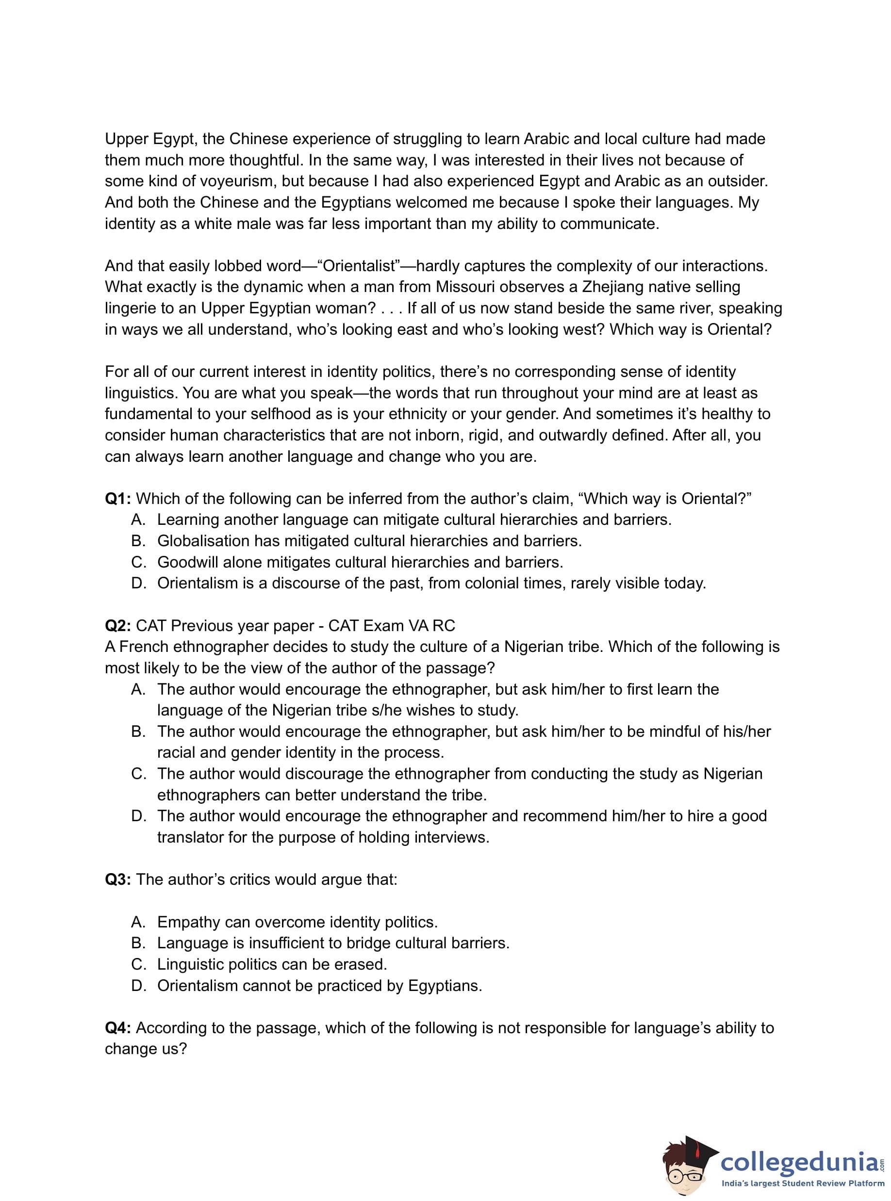 Candidates preparing for CAT 2025 can download the CAT VARC question paper with the solution pdf for the Slot 2 exam conducted on November 24, 2019, to get a better idea about the type of questions asked in the paper and the difficulty level of questions.