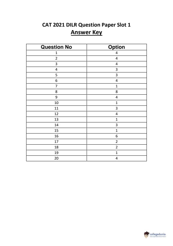 Candidates preparing for CAT 2025 can download CAT DILR question paper with the answer key PDF for the Slot 1 exam conducted on November 28, 2021, to get a better idea about the type of questions asked in the paper and the difficulty level of questions.