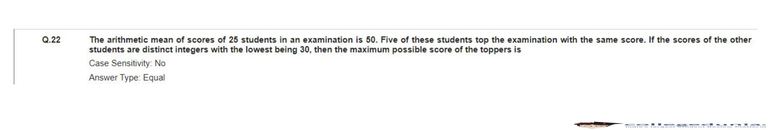 The arithmetic mean of scores of 25 students in an examination is 50. Five of these students top the examination with the same score.
