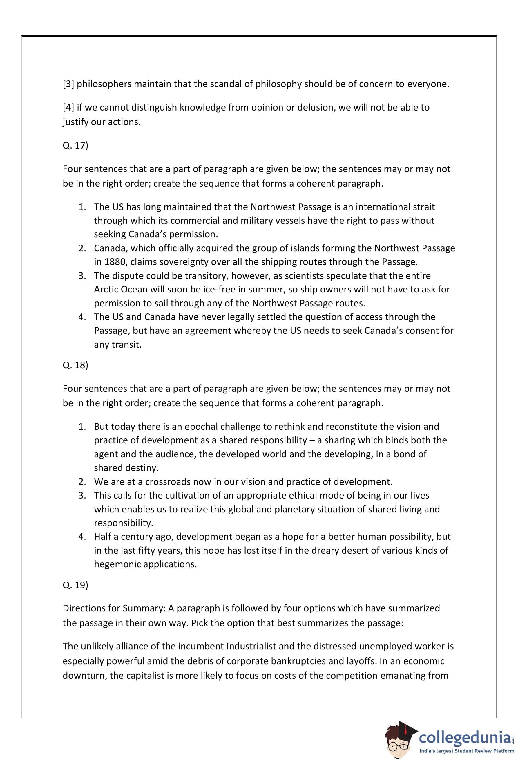 Directions for Summary: A paragraph is followed by four options which have summarized the passage in their own way. Pick the option that best summarizes the passage: